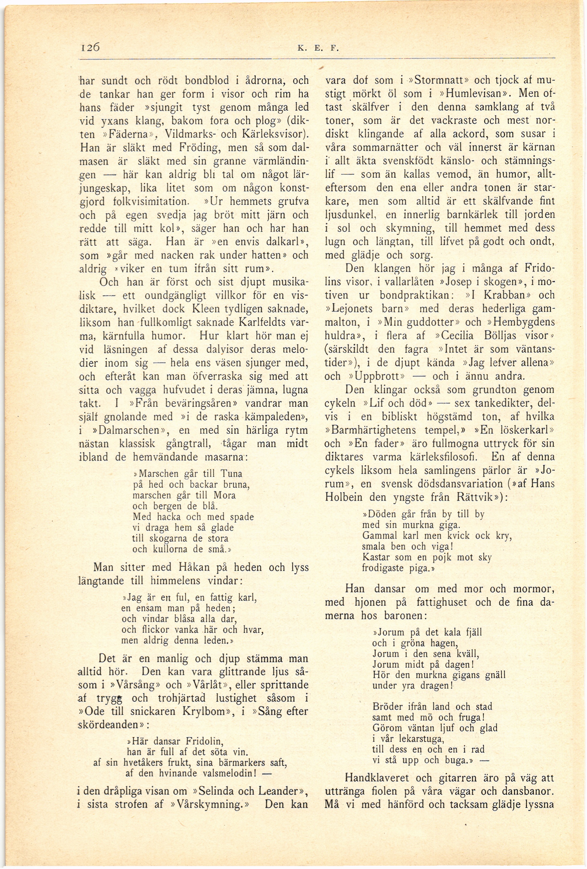 (dikten »Fäderna», Vildmarks- och Kärleksvisor).