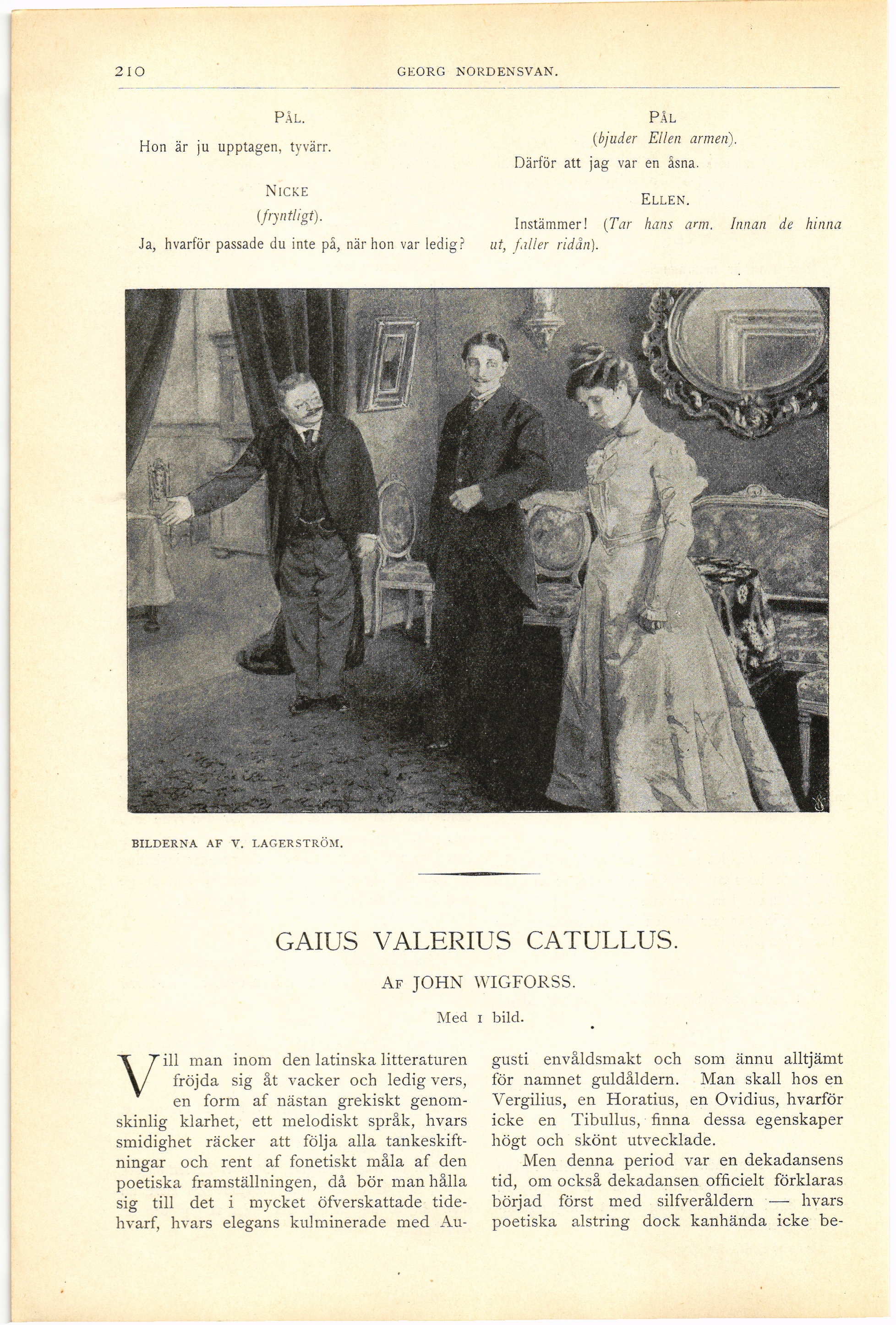 Full resolution (JPEG) - On this page / på denna sida - Fjärde häftet - Den rätte. En liten komedi af Georg Nordensvan - Gaius Valerius Catullus. Af John Wigforss. Med 1 bild