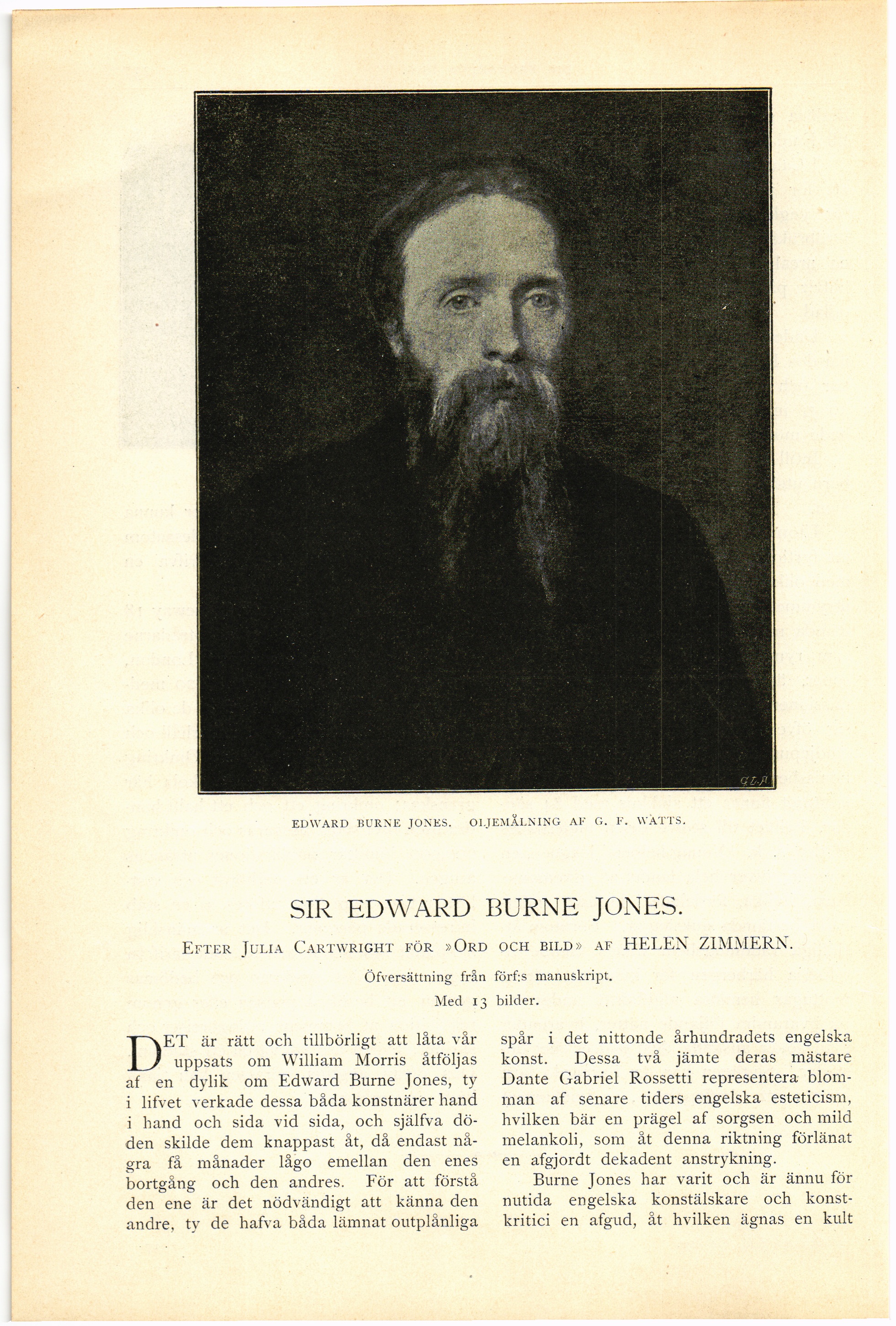 Full resolution (JPEG) - On this page / på denna sida - Femte häftet - Sir Edward Burne Jones. Efter Julia Cartwright för »Ord och bild» af Helen Zimmern. Öfversättning från förf:s manuskript. Med 13 bilder