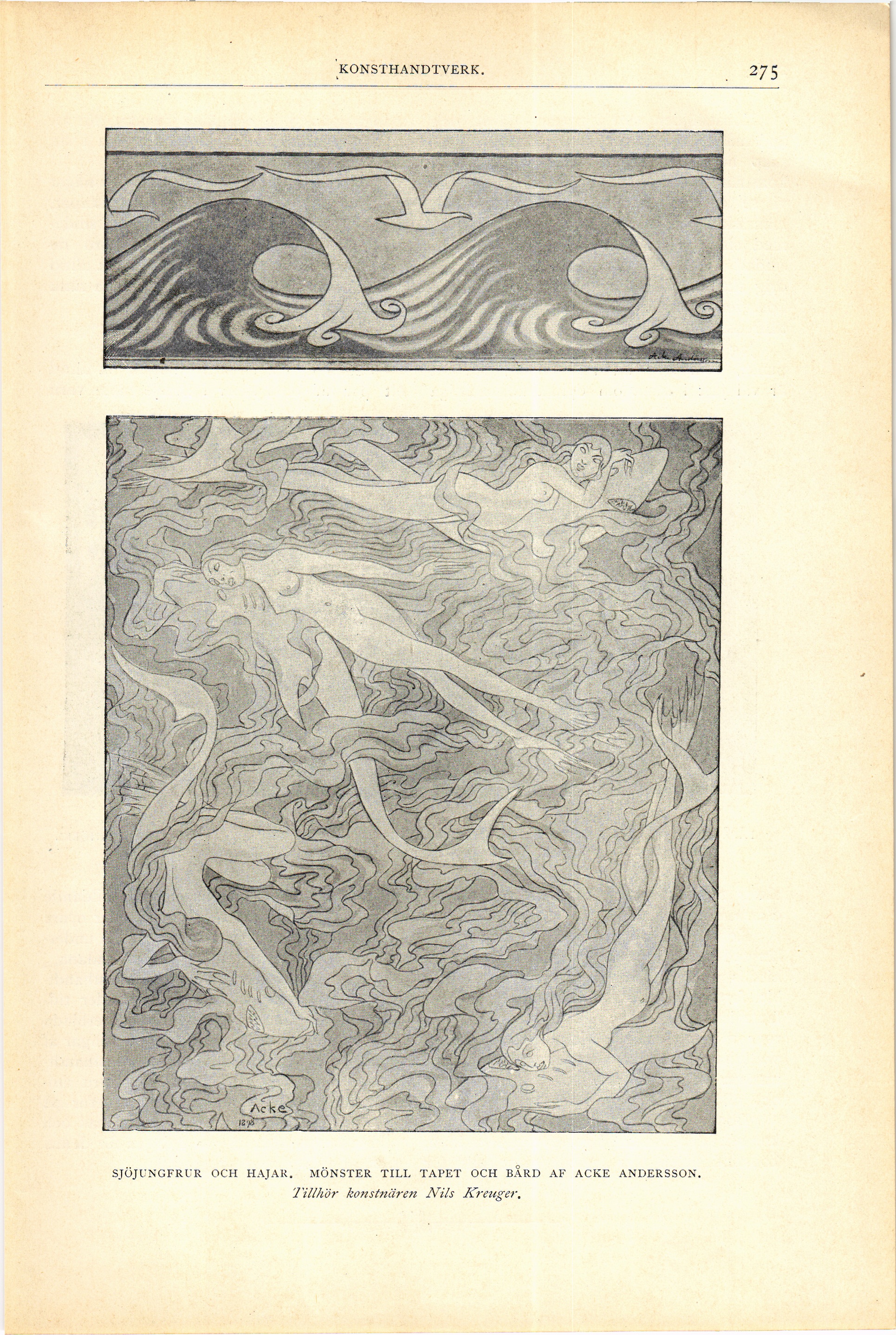 sjöjungfrur och hajar. mönster till tapet och bard af acke andersson.