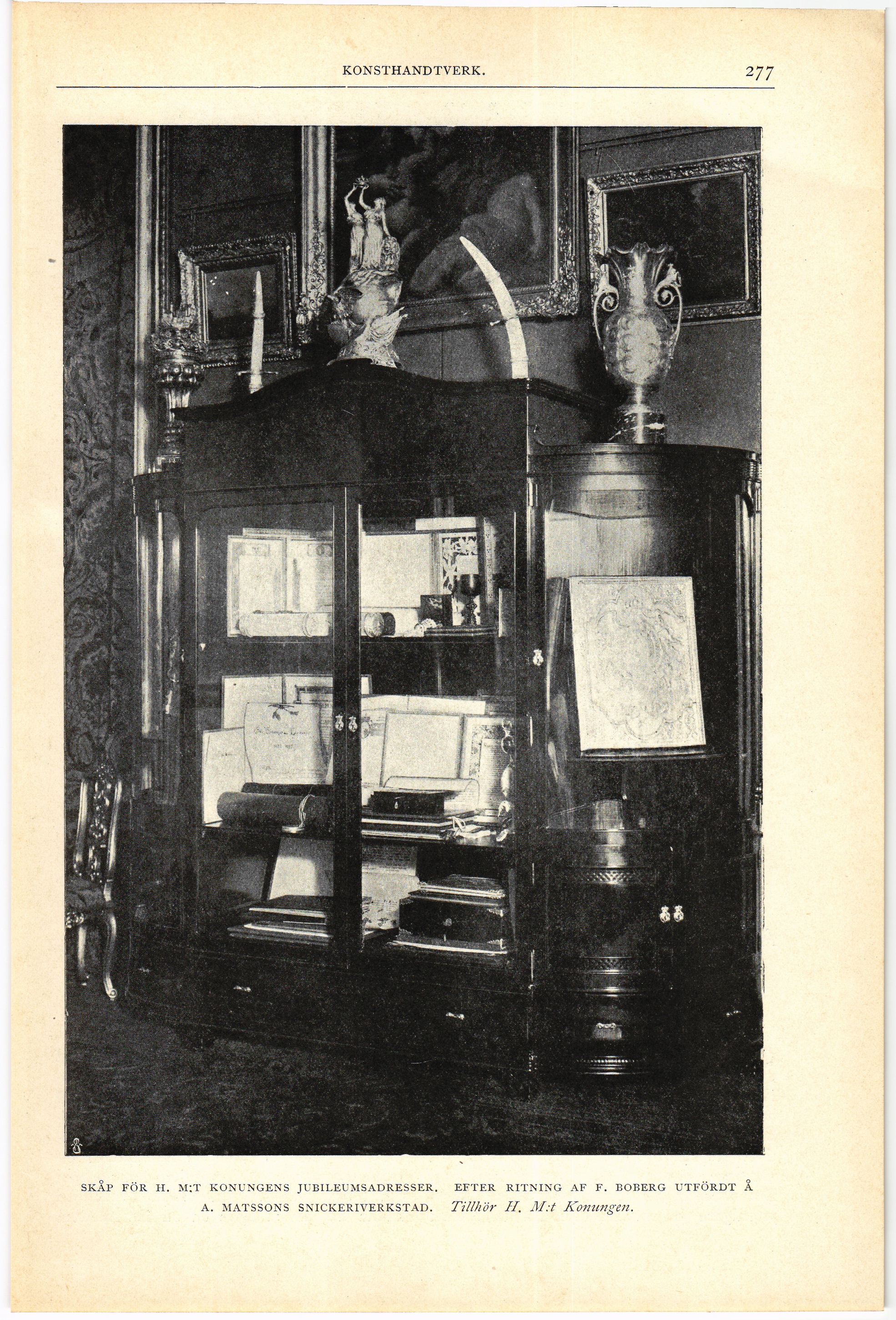 skåp för h. m;t konungens jubileumsadresser. efter ritning af f. boberg utfördt å