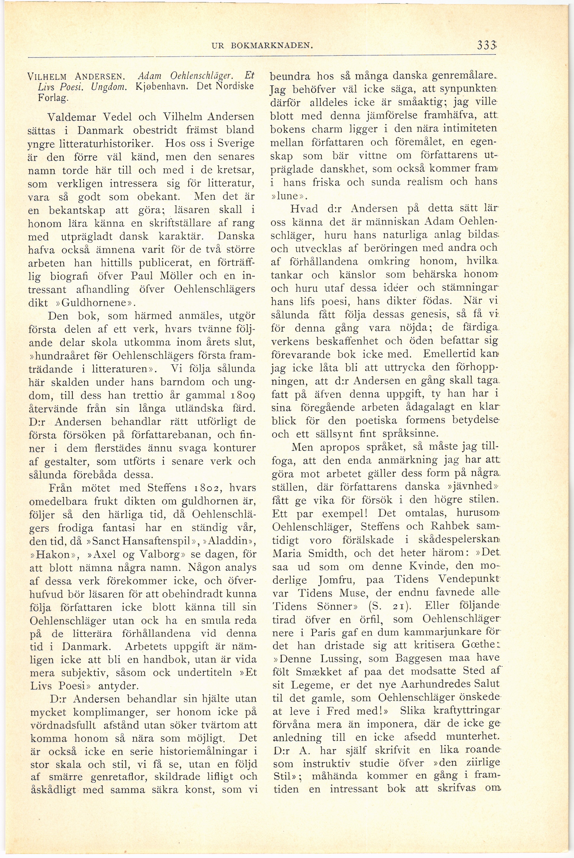 Vilhelm Andersen. Adam Oehlenschläger. Et