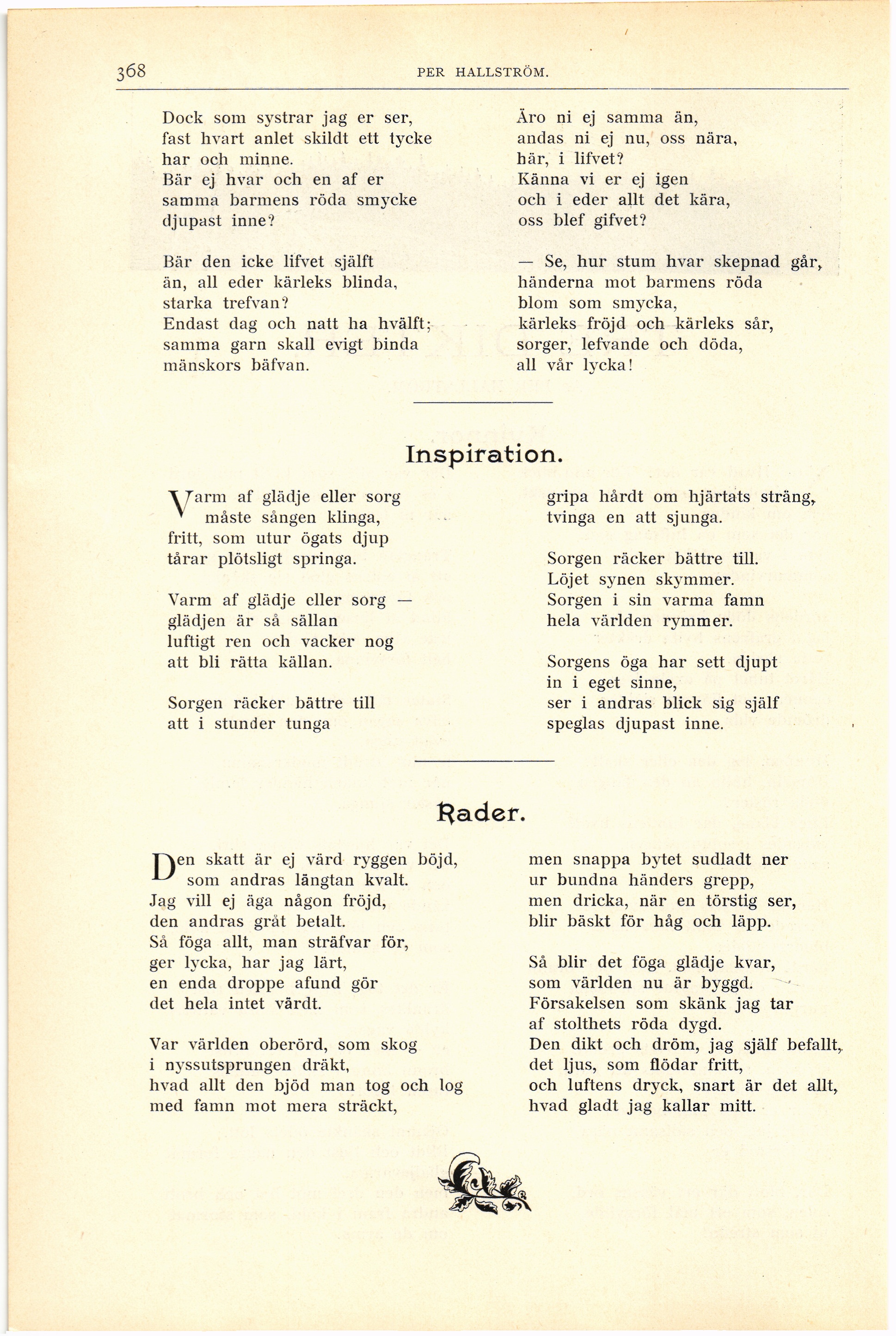 Full resolution (JPEG) - On this page / på denna sida - Sjunde häftet - Tre dikter. Af Per Hallström - Kvinnor - Inspiration - Rader