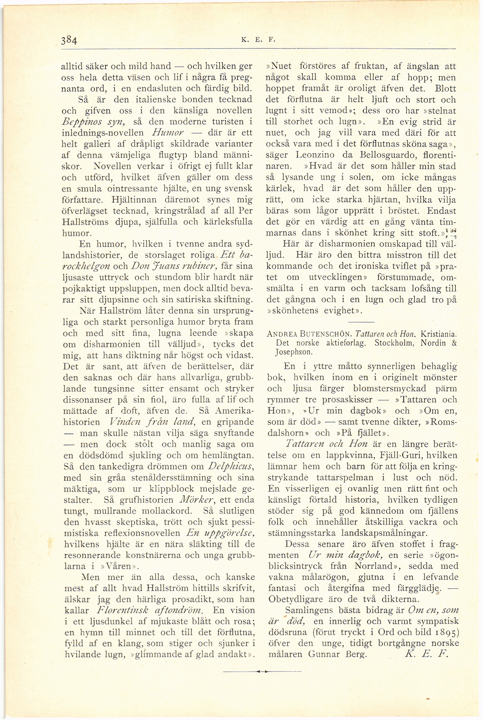 Andrea Butenschön. Tattaren och Hon. Kristiania.