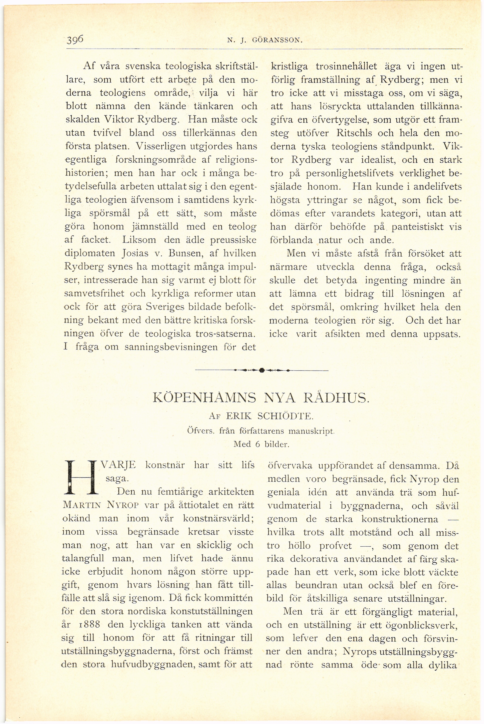 Full resolution (JPEG) - On this page / på denna sida - Åttonde häftet - En blick på den moderna teologien. Af N. J. Göransson. Med 5 bilder - Köpenhamns nya rådhus. Af Erik Schiödte. Öfvers. från författarens manuskript. Med 6 bilder
