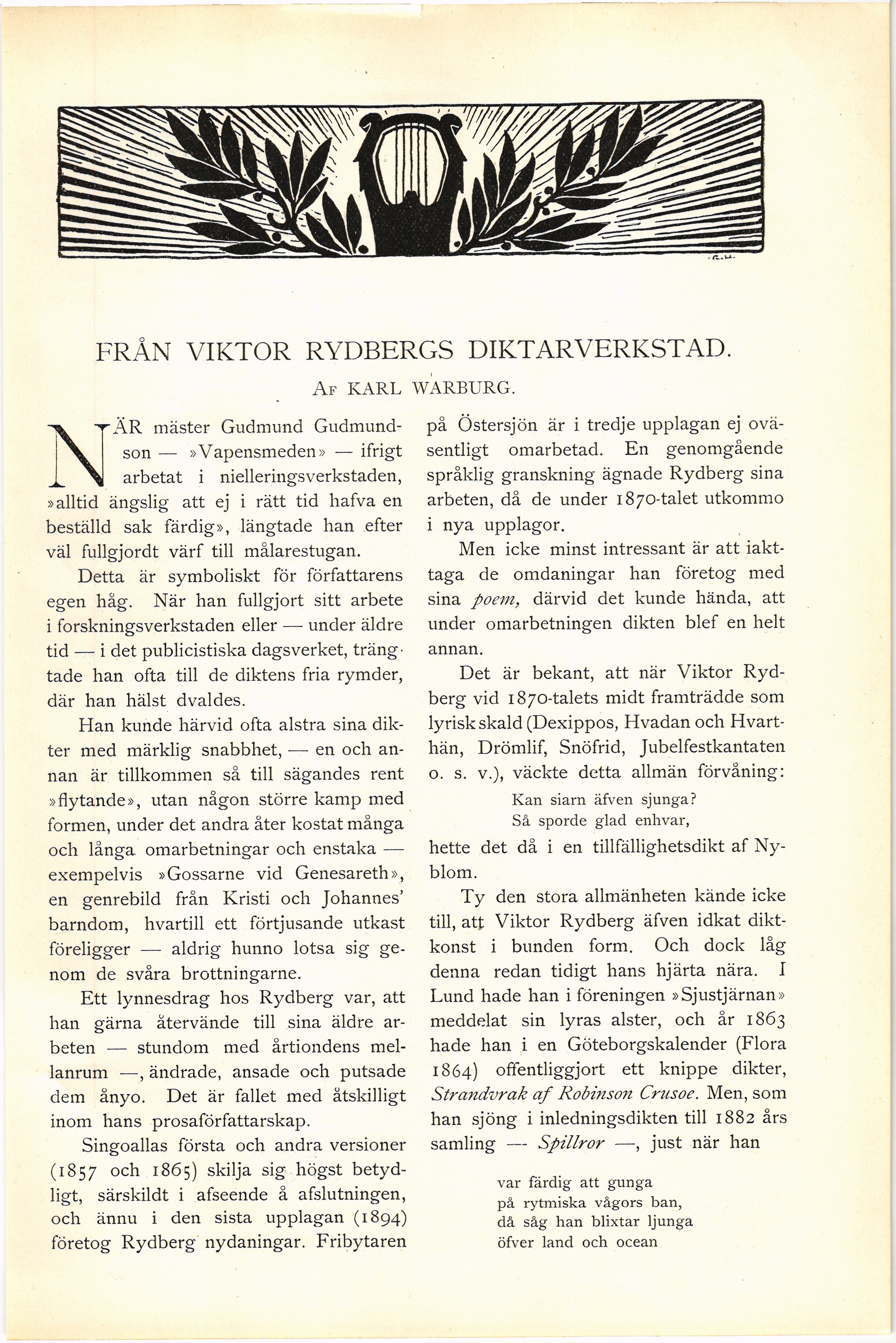 FRÅN VIKTOR RYDBERGS DIKTARVERKSTAD.