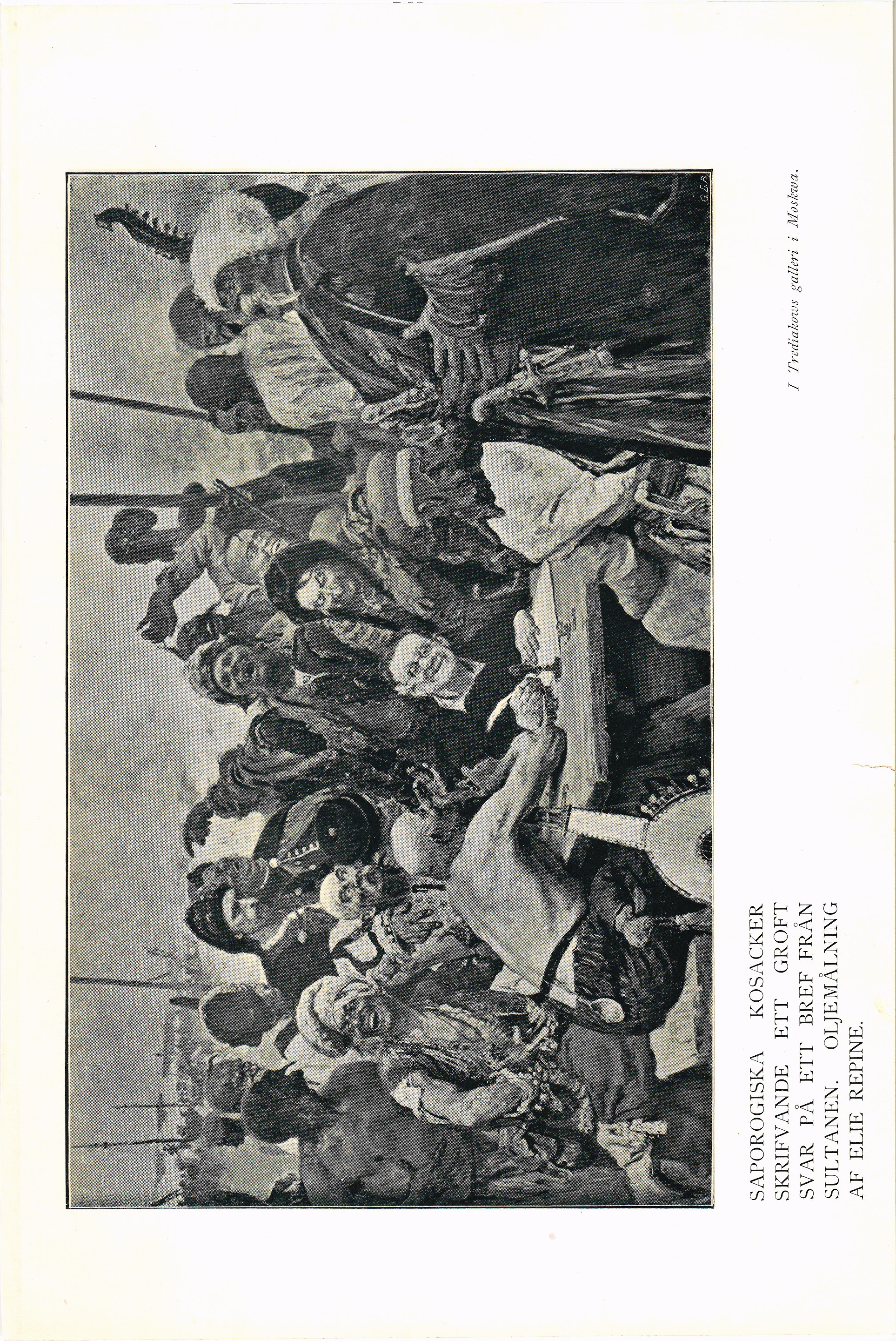 Full resolution (JPEG) - On this page / på denna sida - Elfte häftet - Saporogiska kosacker skrifvande ett groft svar på ett bref från sultanen. Oljemålning af Elie Repine