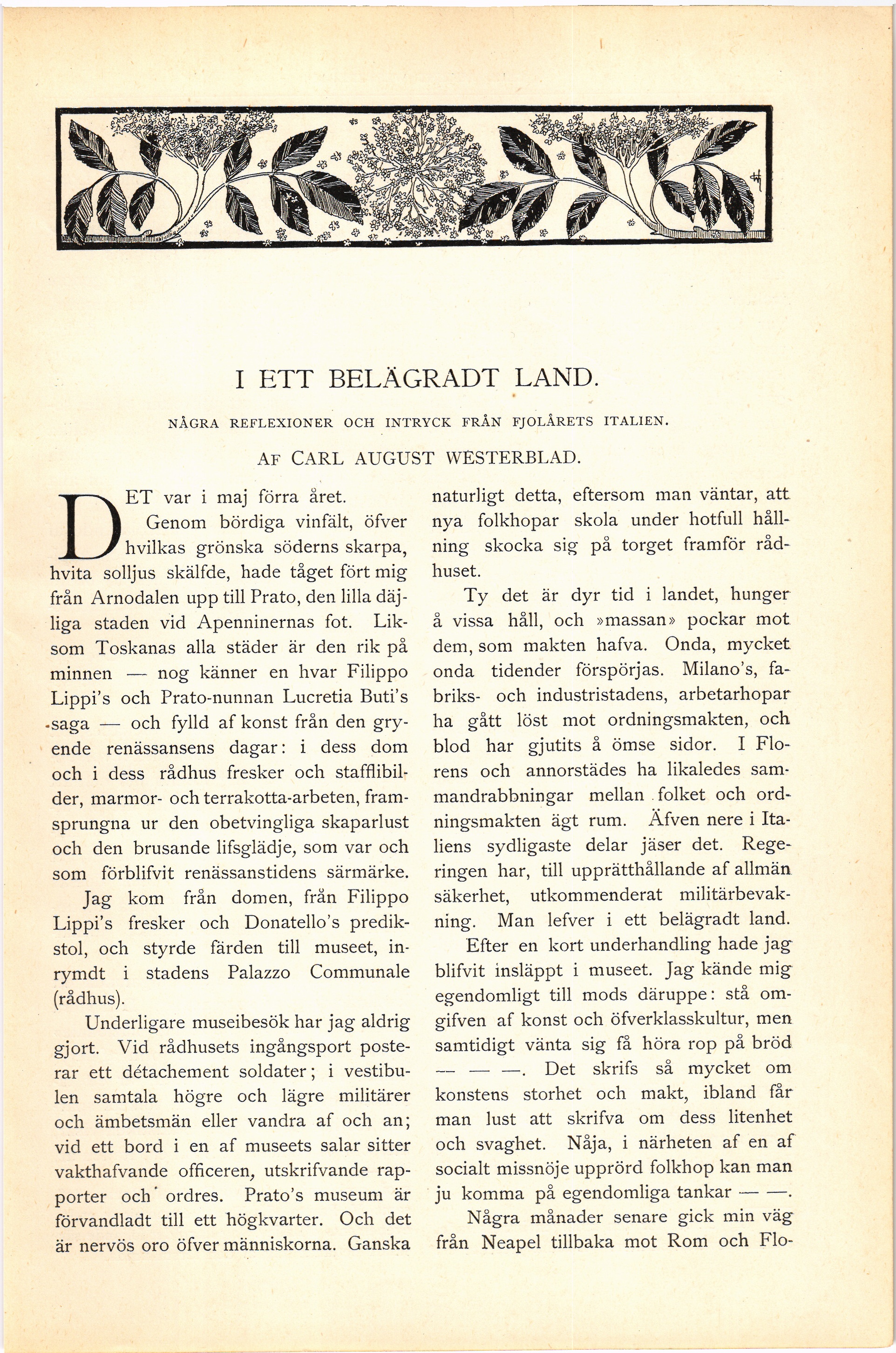 Full resolution (JPEG) - On this page / på denna sida - Elfte häftet - I ett belägradt land. Några reflexioner och intryck från fjolårets Italien. Af Carl August Westerblad