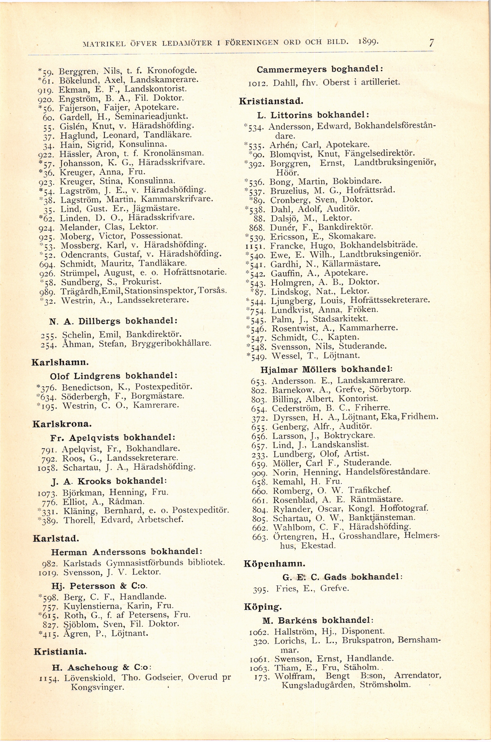Full resolution (JPEG) - On this page / på denna sida - Matrikel öfver ledamöter i föreningen Ord och Bild 1899 - 2. Ledamöter som prenumerera genom bokhandel