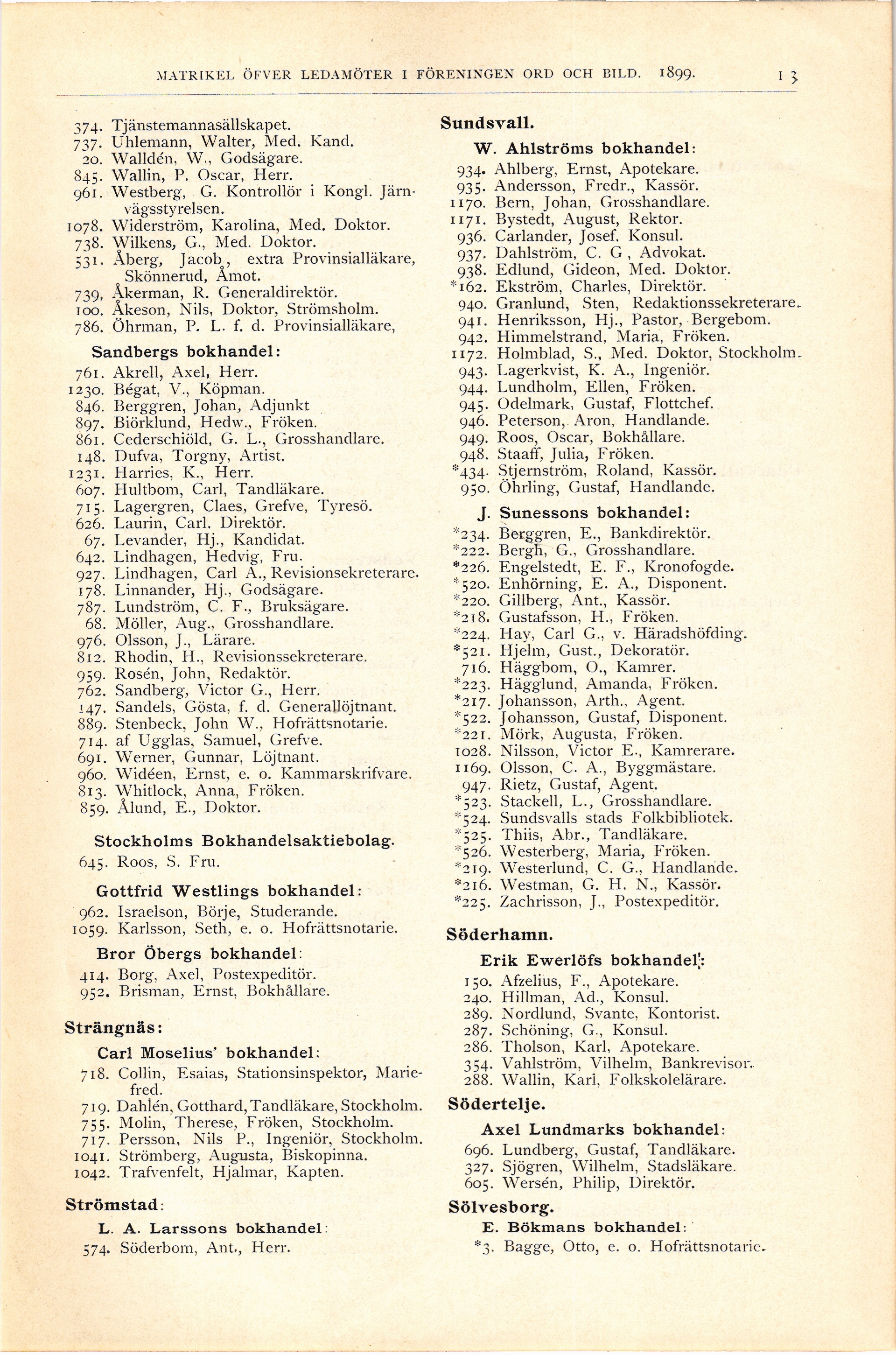Full resolution (JPEG) - On this page / på denna sida - Matrikel öfver ledamöter i föreningen Ord och Bild 1899 - 2. Ledamöter som prenumerera genom bokhandel