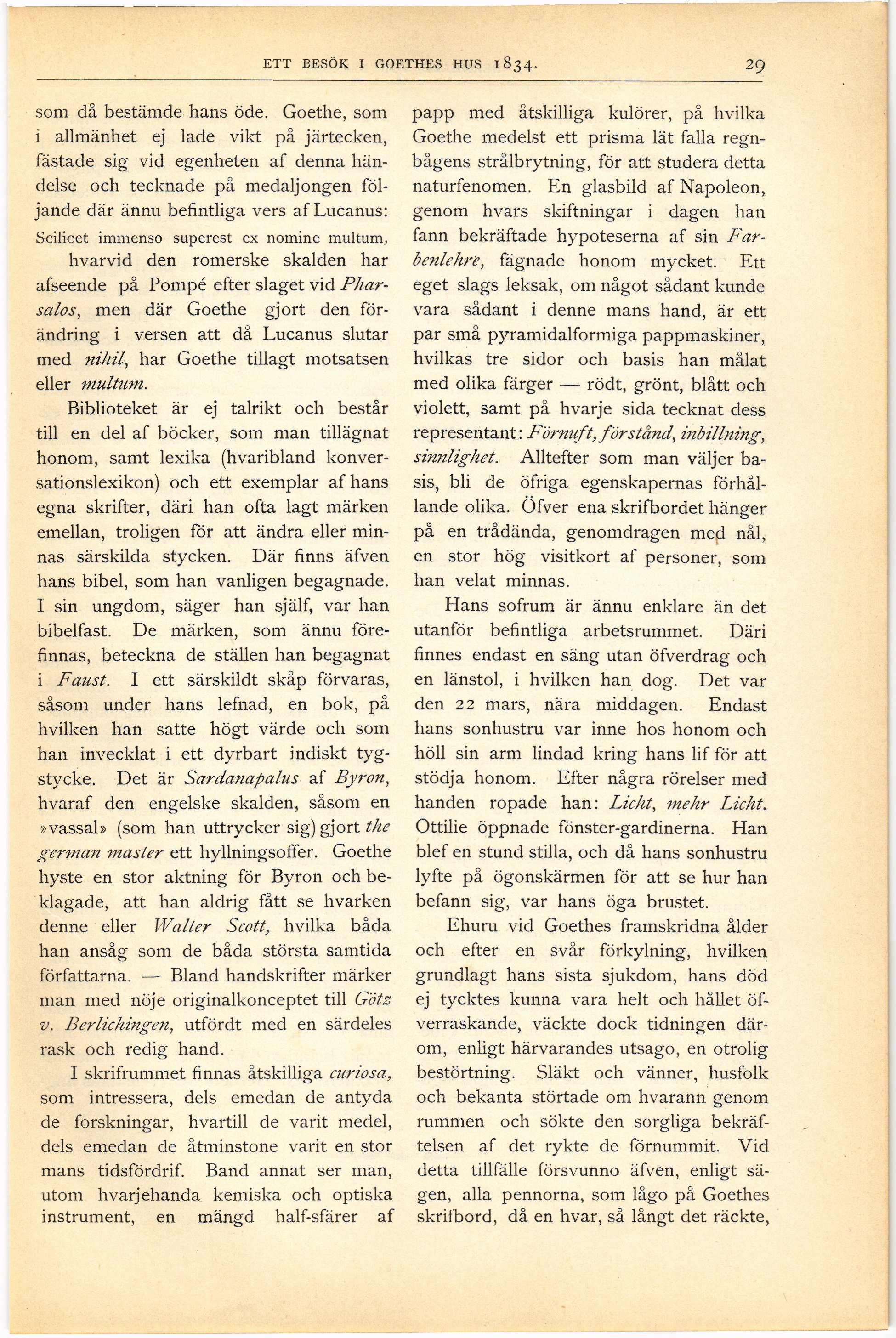 Full resolution (JPEG) - On this page / på denna sida - Första häftet - Ett besök i Goethes hus 1834. Af Bernhard von Beskow. Med 1 bild
