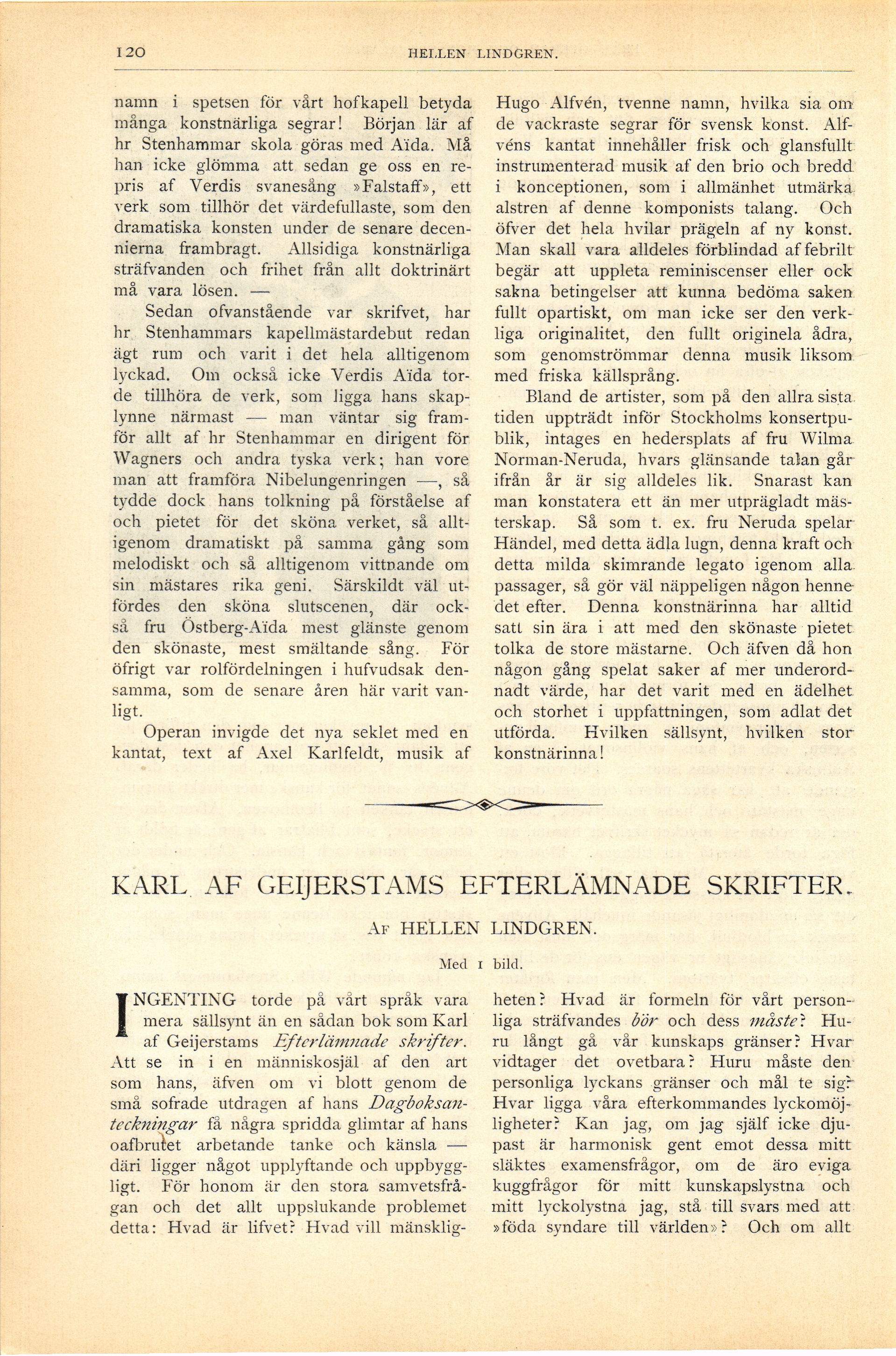 Full resolution (JPEG) - On this page / på denna sida - Andra häftet - Från operan och konsertsalarne. Af Magnus Josephson. Med 3 bilder - Karl af Geijerstams efterlämnade skrifter. Af Hellen Lindgren. Med 1 bild