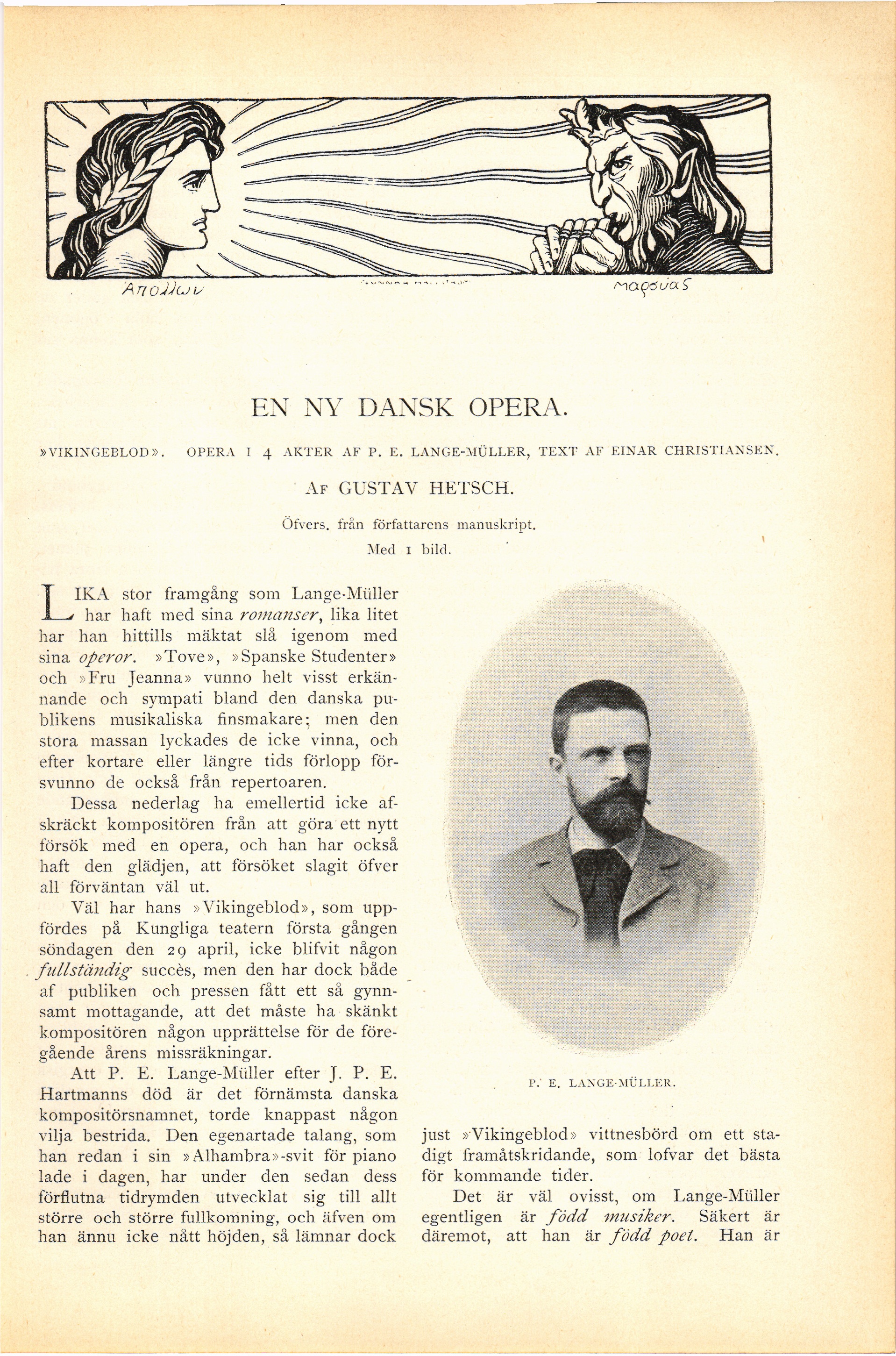 Full resolution (JPEG) - On this page / på denna sida - Sjätte häftet - En ny dansk opera. »Vikingeblod». Opera i 4 akter af P. E. Lange-Müller, text af Einar Christiansen. Af Gustav Hetsch. Öfvers. från författarens manuskript. Med 1 bild
