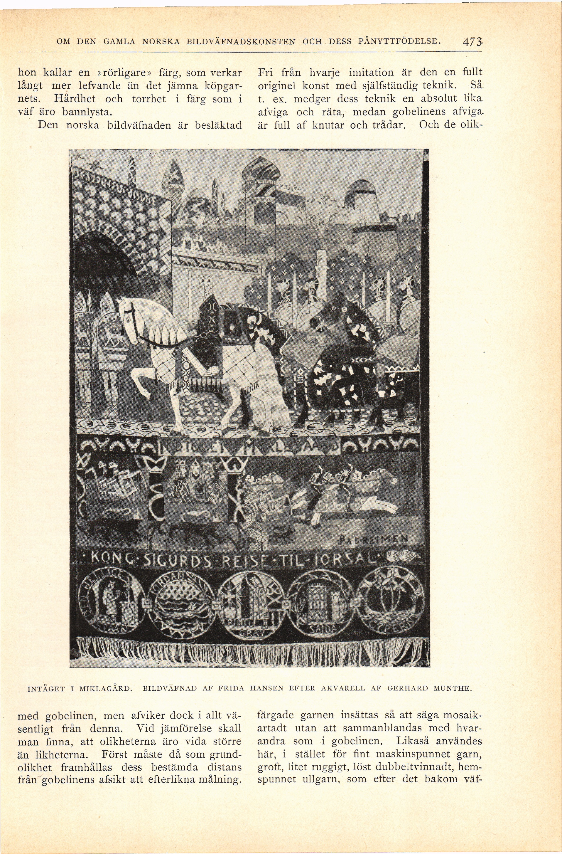 OM DEN GAMLA NORSKA BILDVÄFNADSKONSTEN OCH DESS PÅNYTTFÖDELSE. 47 I