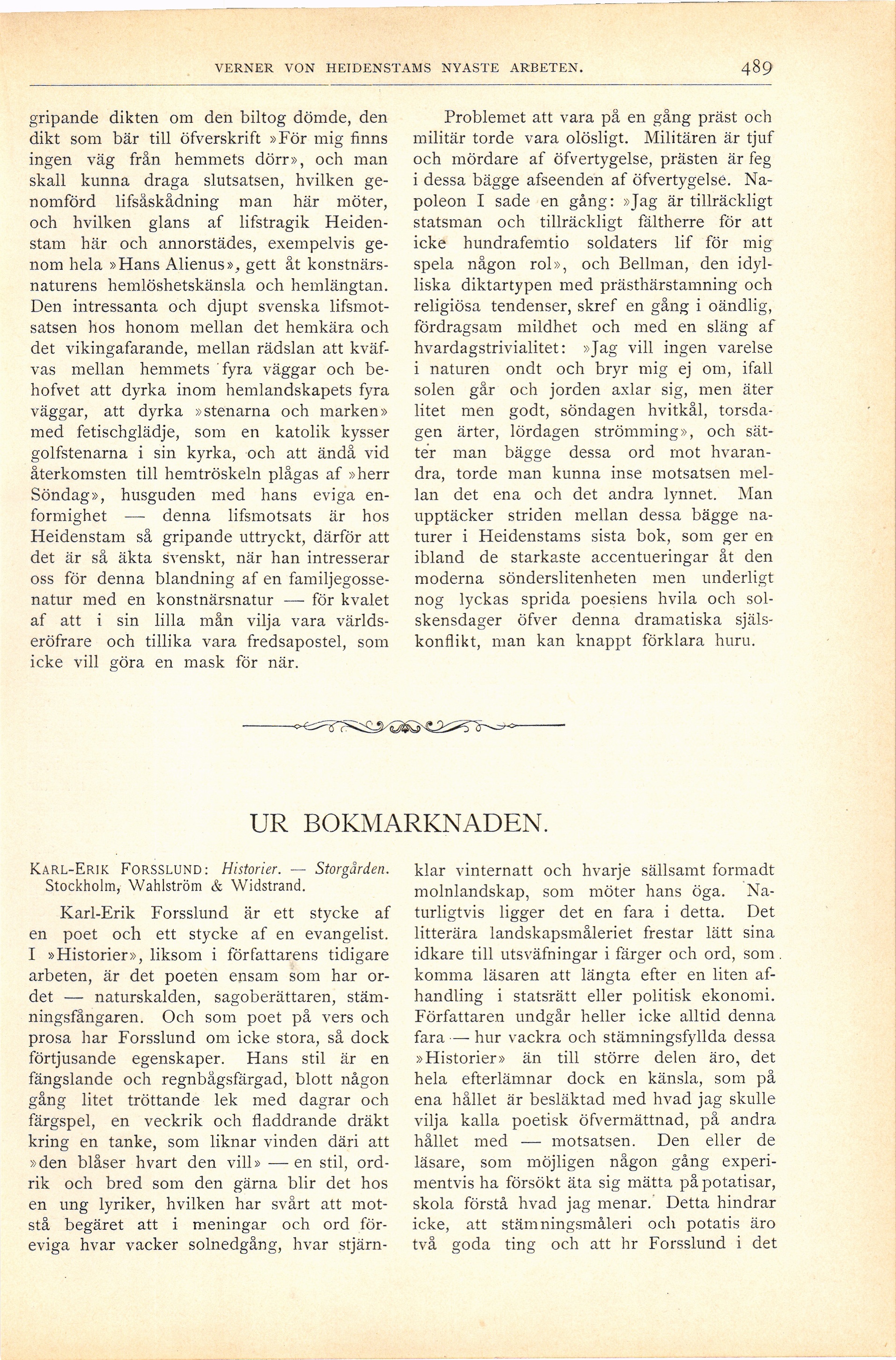 VERNER VON HEIDENSTAMS NYASTE ARBETEN.