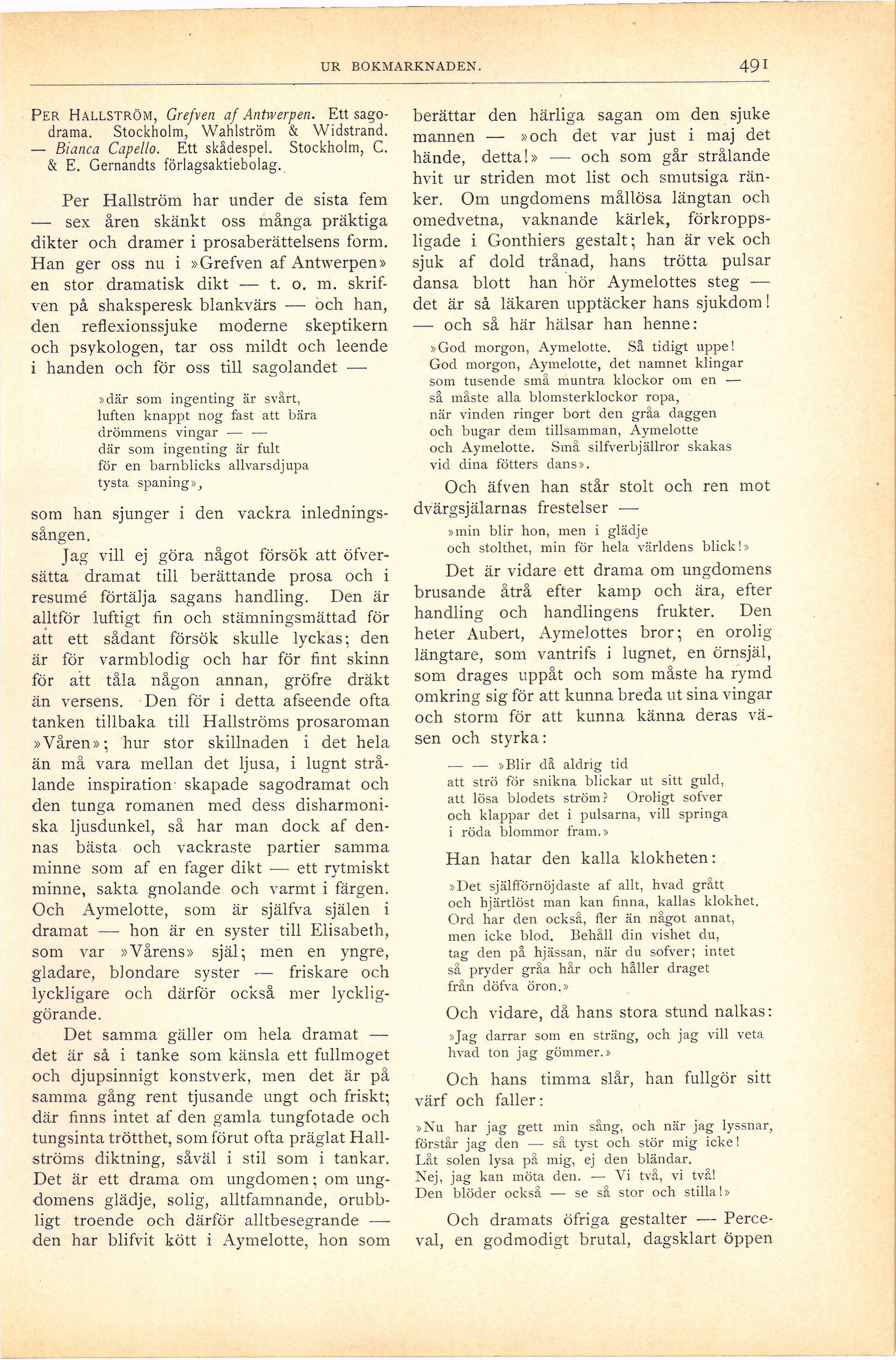 Hallströms diktning, såväl i stil som i tankar.