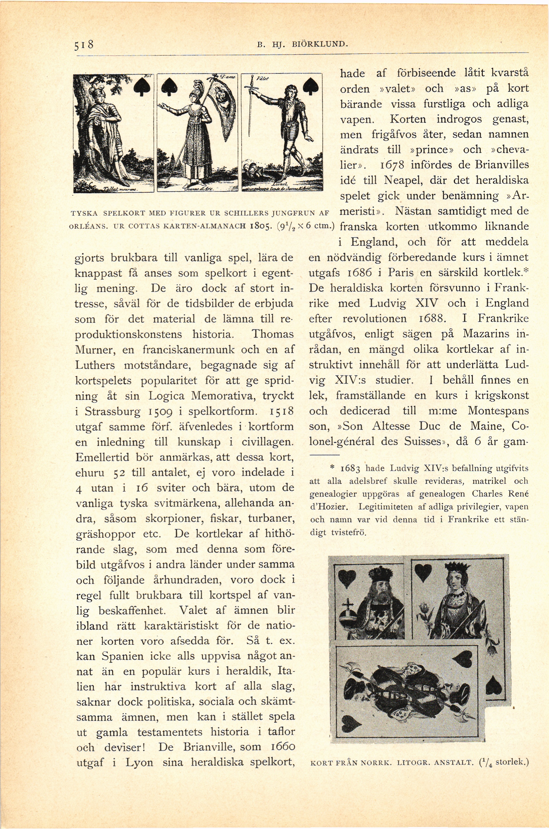 Full resolution (JPEG) - On this page / på denna sida - Nionde häftet - Om spelkort. Af B. Hj. Biörklund. Med 23 bilder