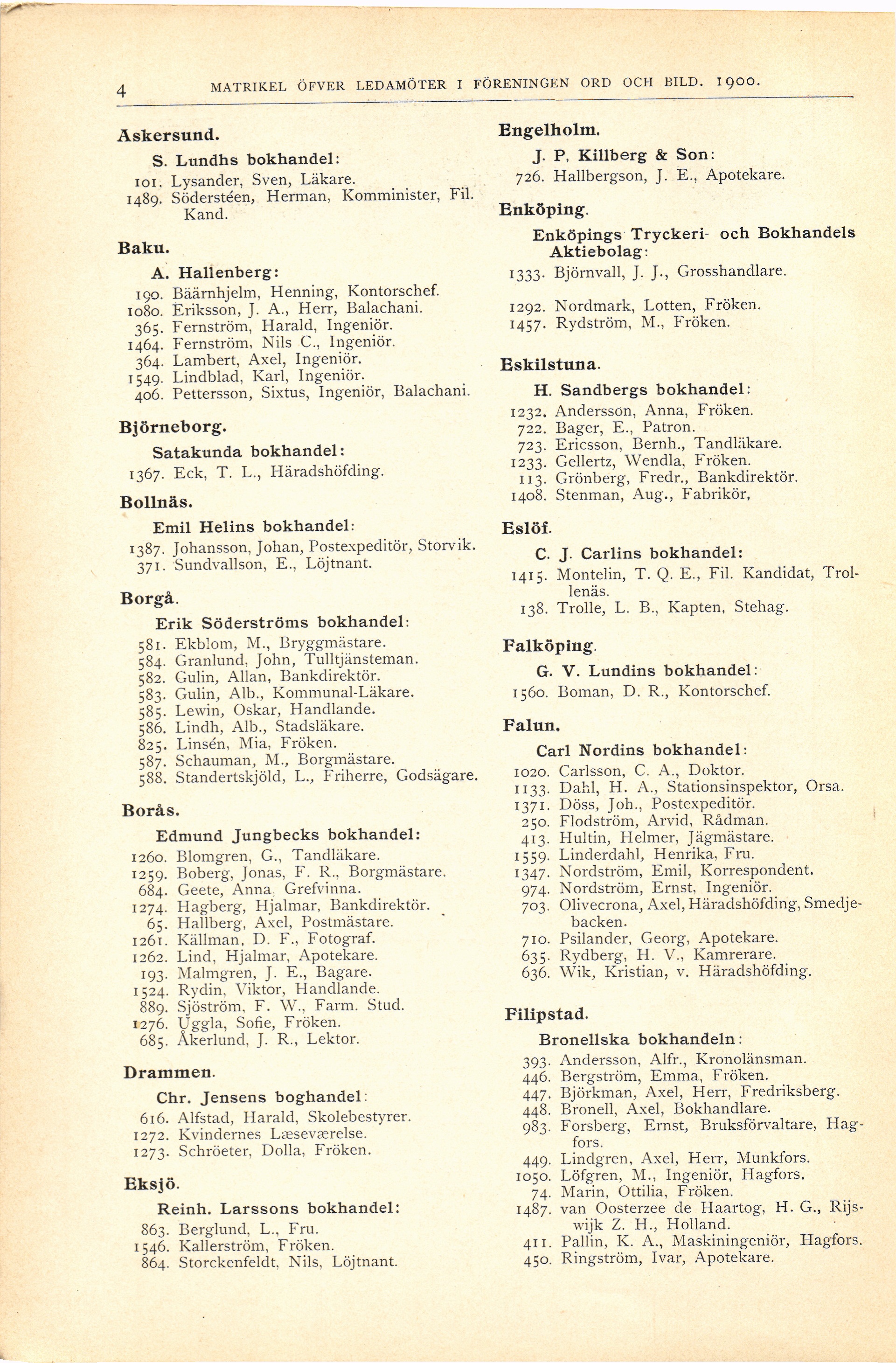 Full resolution (JPEG) - On this page / på denna sida - Matrikel öfver ledamöter i föreningen Ord och Bild - 2. Ledamöter som prenumerera genom bokhandel