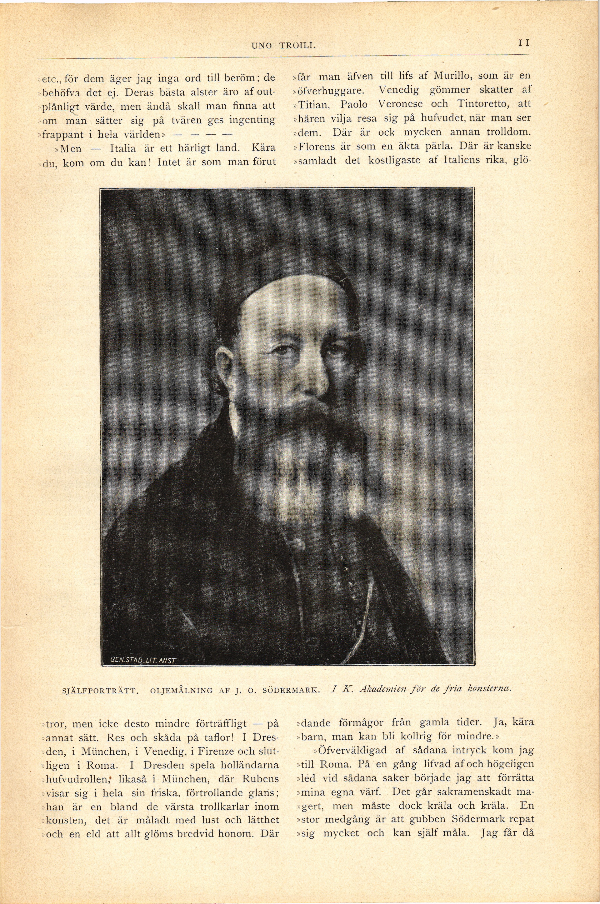 själfporträtt. oljemålning af j. o. södermark. / K. Akademien for de fria konsterna.