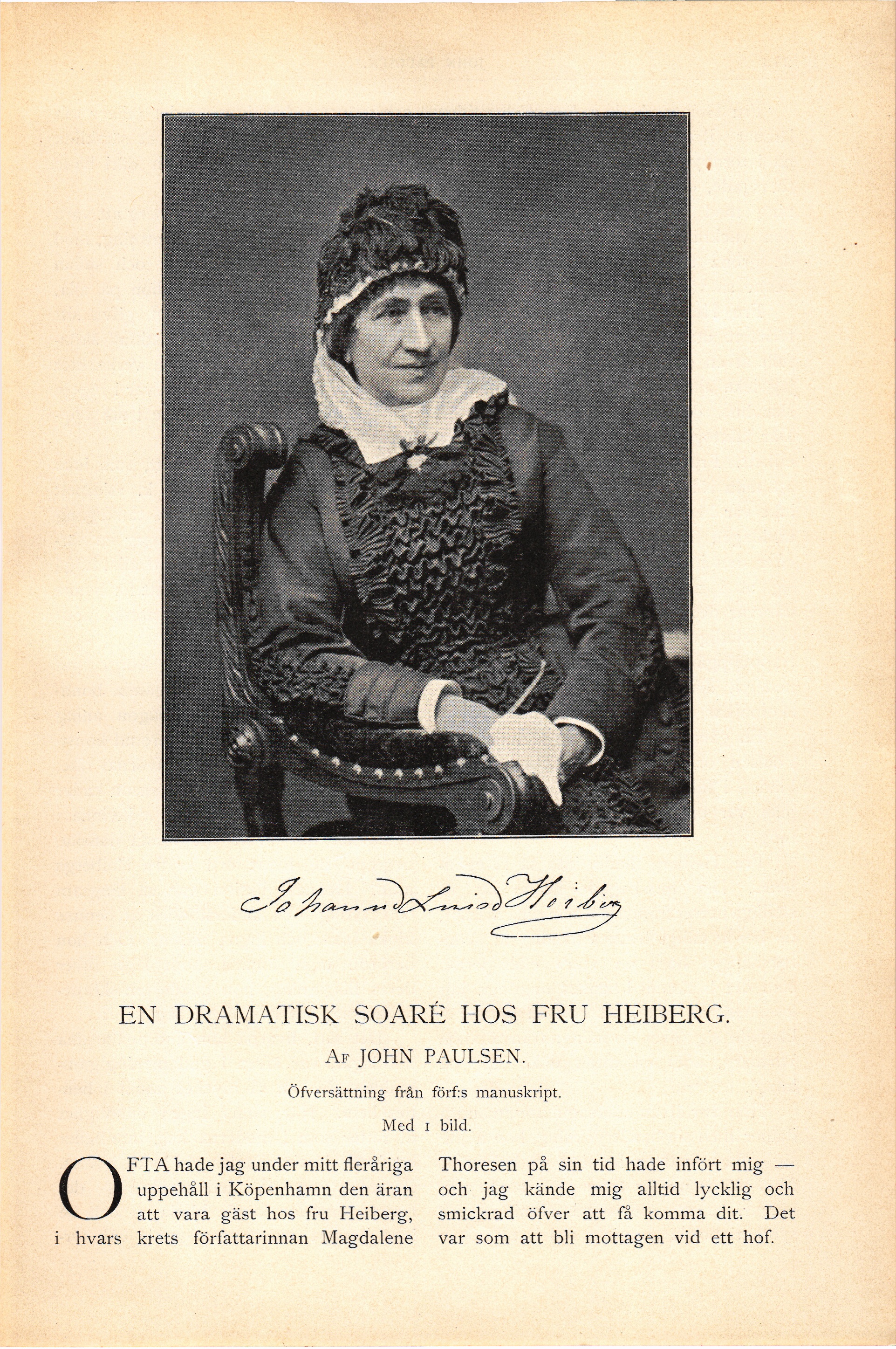 Full resolution (JPEG) - On this page / på denna sida - Fjärde häftet - En dramatisk soaré hos fru Heiberg. Af John Paulsen. Öfversättning från förf:s manuskript. Med 1 bild