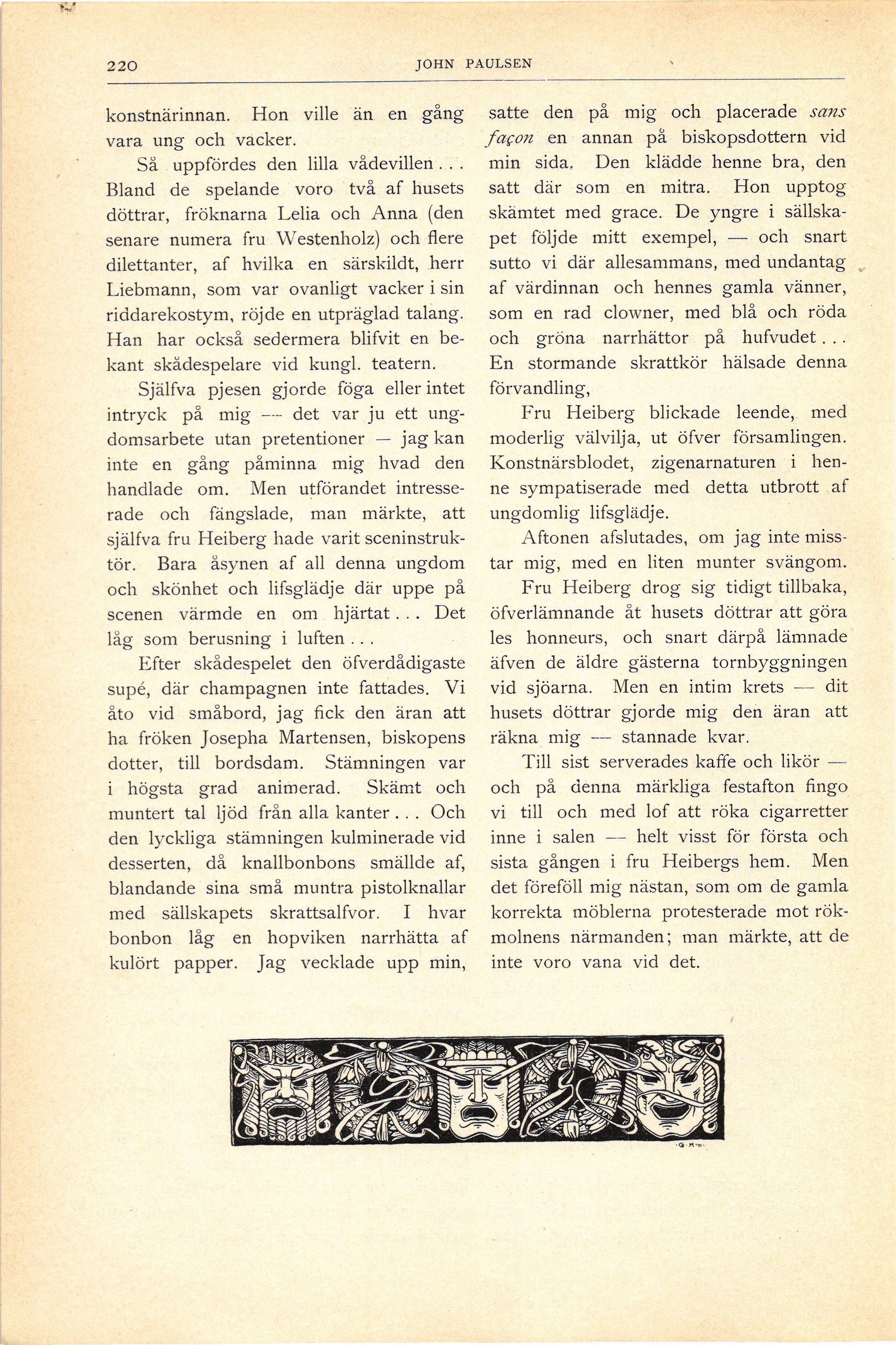 Full resolution (JPEG) - On this page / på denna sida - Fjärde häftet - En dramatisk soaré hos fru Heiberg. Af John Paulsen. Öfversättning från förf:s manuskript. Med 1 bild
