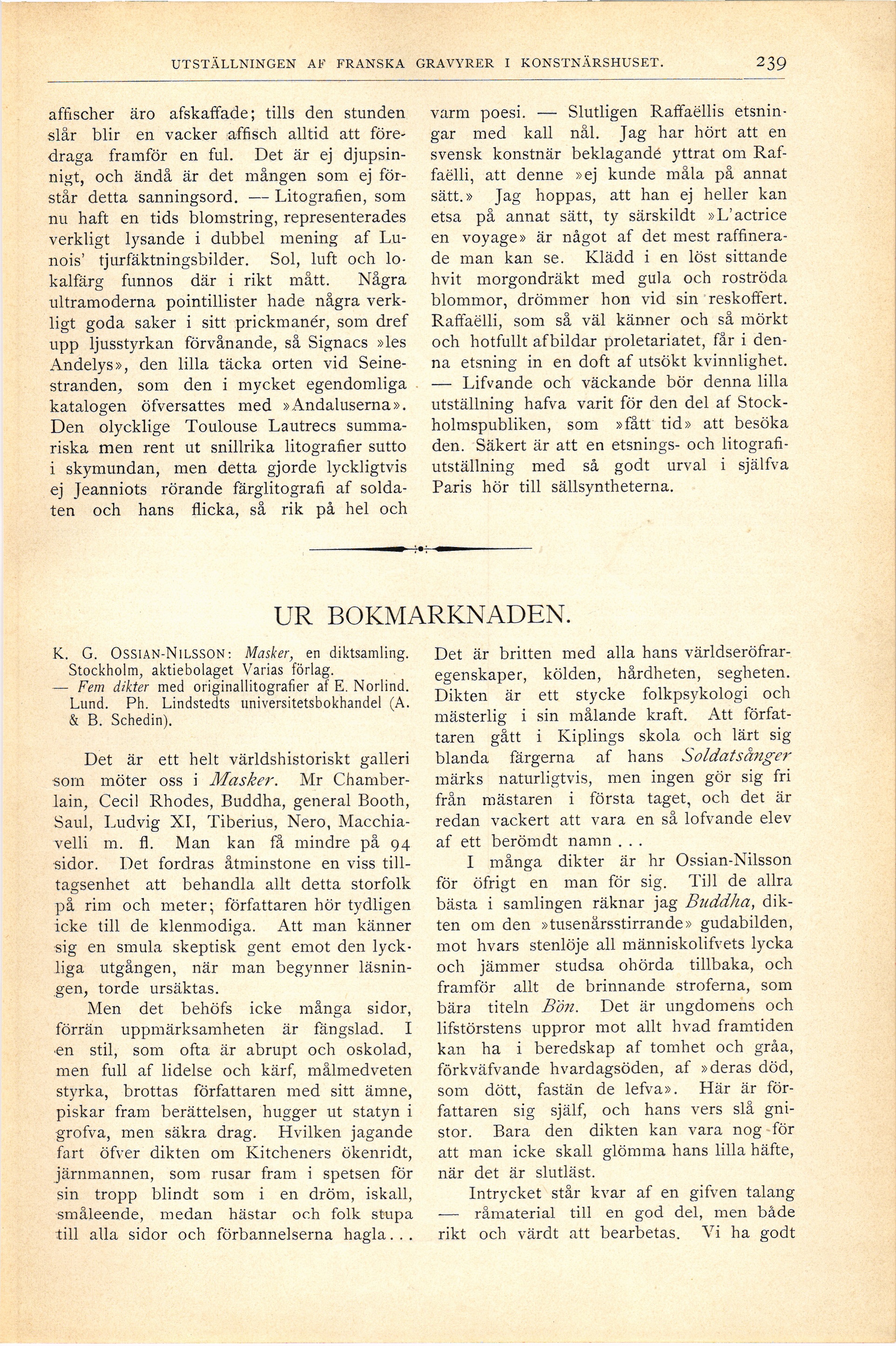 Full resolution (JPEG) - On this page / på denna sida - Fjärde häftet - Utställningen af franska gravyrer i konstnärshuset. Af Carl G. Laurin. Med 2 bilder - Ur bokmarknaden. Af Bo Bergman