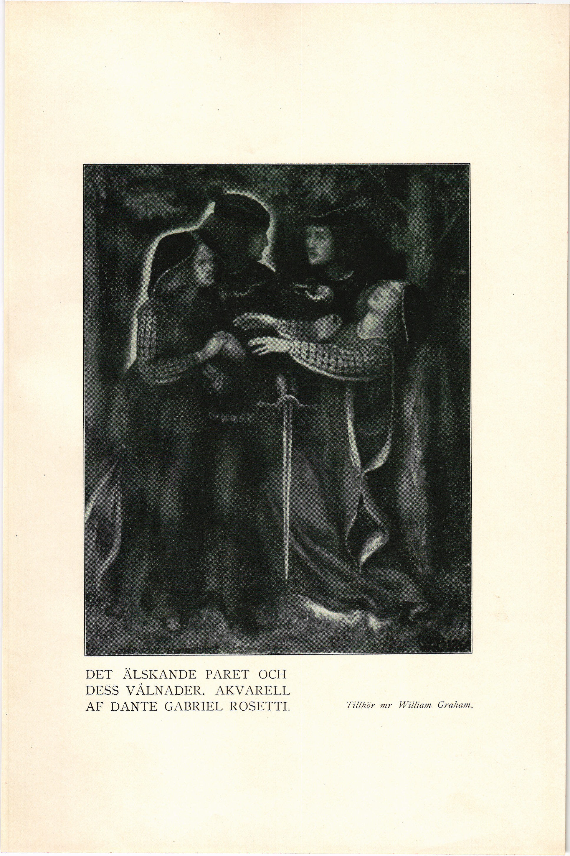 Full resolution (JPEG) - On this page / på denna sida - Sjunde häftet - Det älskande paret och dess vålnader. Akvarell af Dante Gabriel Rosetti