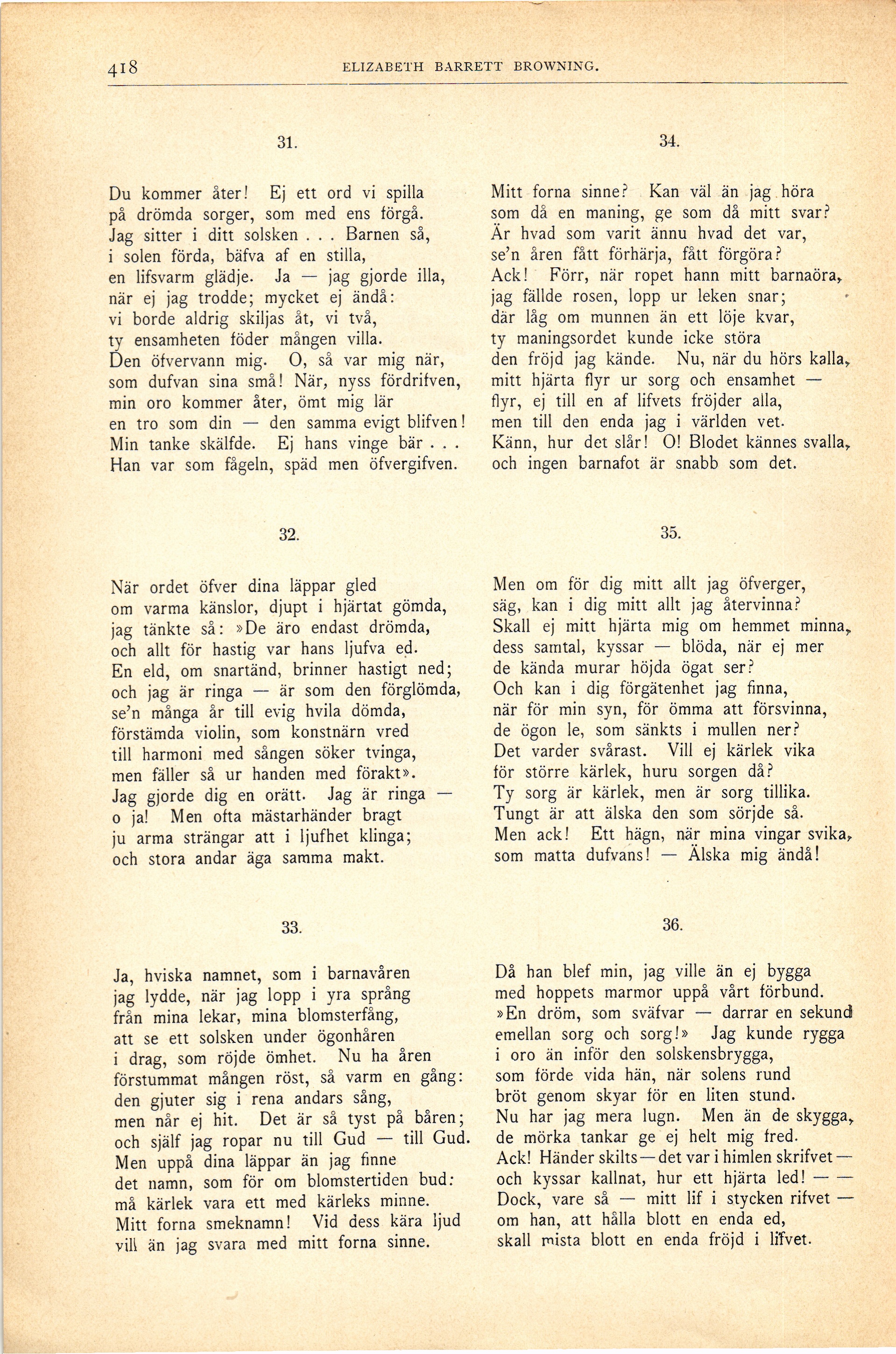 Full resolution (JPEG) - On this page / på denna sida - Åttonde häftet - Sonetter. (Sonnets from the Portuguese.) Fritt efter Elizabeth Barrett Browning af Ebba Walldén