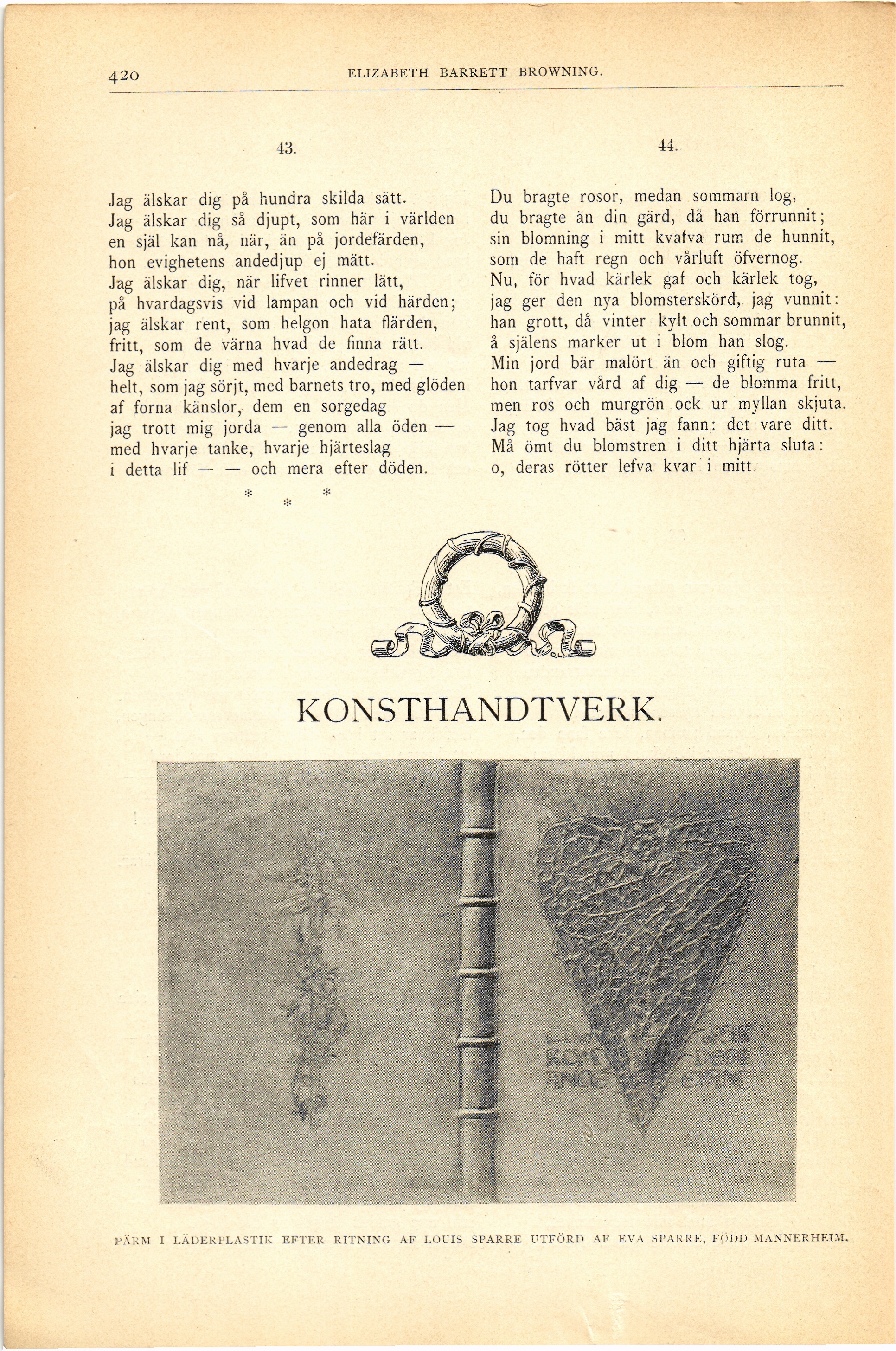 Full resolution (JPEG) - On this page / på denna sida - Åttonde häftet - Sonetter. (Sonnets from the Portuguese.) Fritt efter Elizabeth Barrett Browning af Ebba Walldén - Konsthandtverk