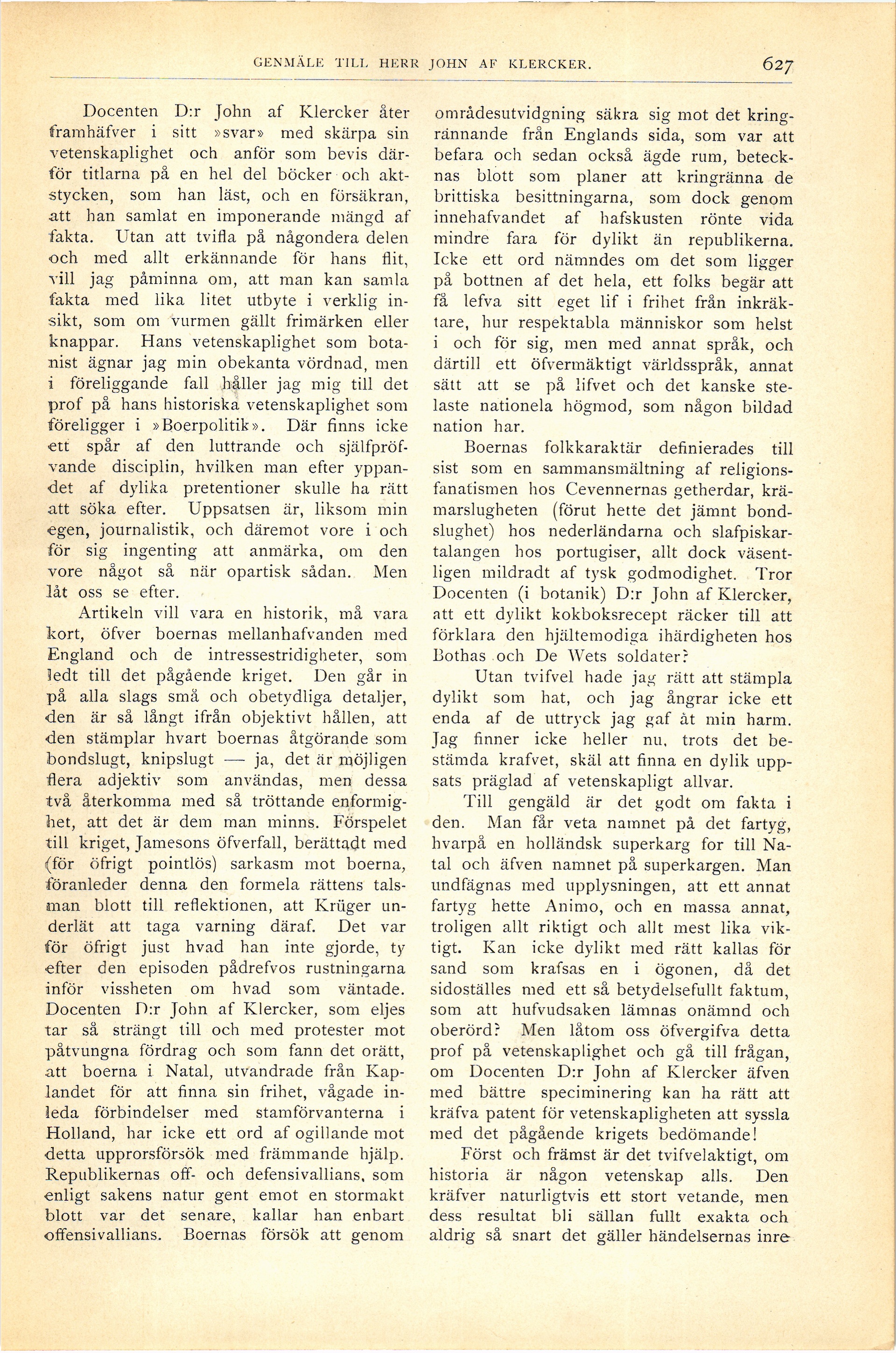 GENMÄLE TILL HERR JOHN AF KLERCKER. 02J