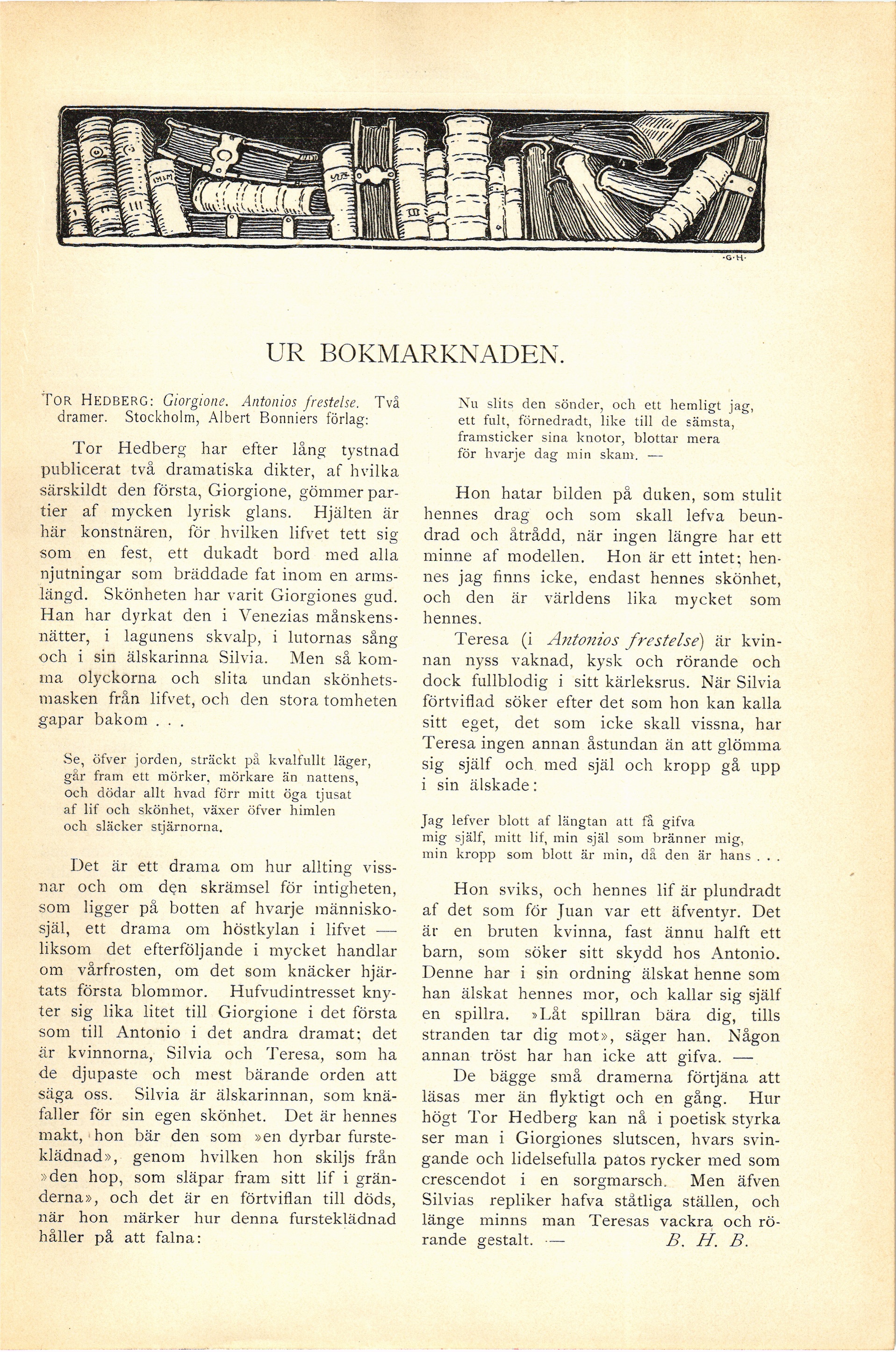 Tor Hedberg: Giorgione. Antonios frestelse. Två