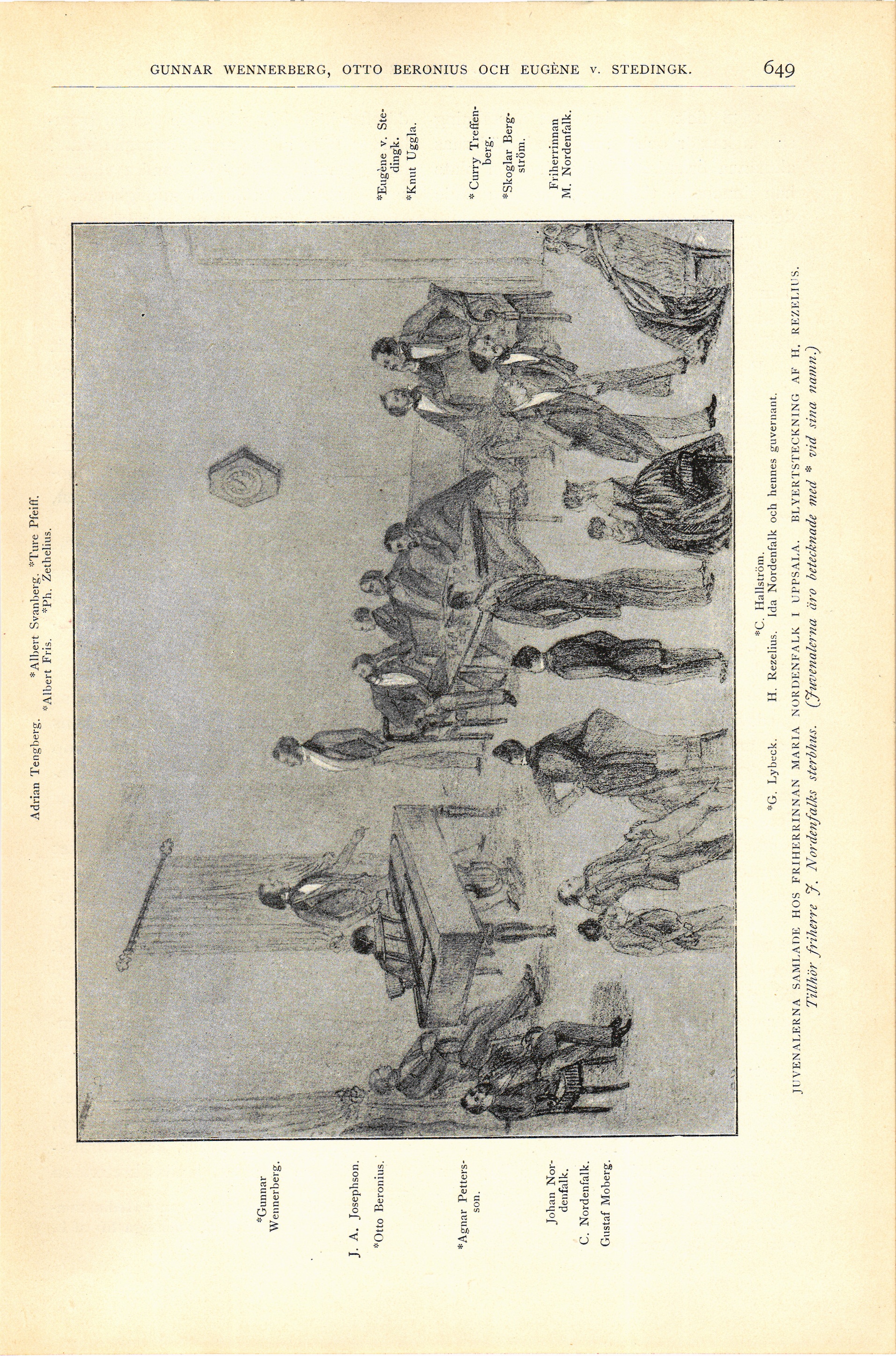 juvenalerna samlade hos friherrinnan maria nordenfalk i uppsala. blyertsteckning af h. rezelius.