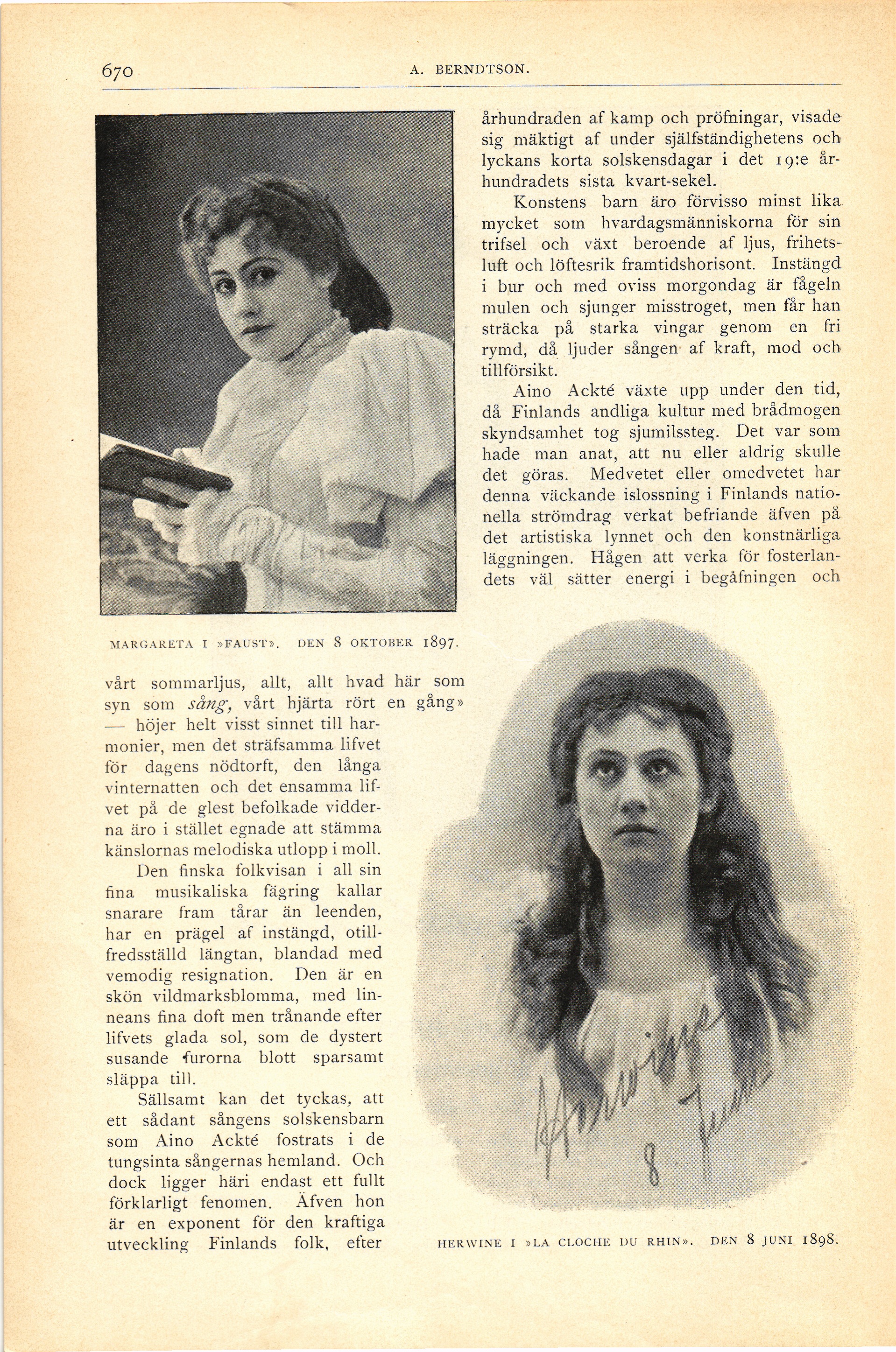 Full resolution (JPEG) - On this page / på denna sida - Tolfte häftet - Aino Ackté-Renvall. Af A. Berndtson. Med 5 bilder