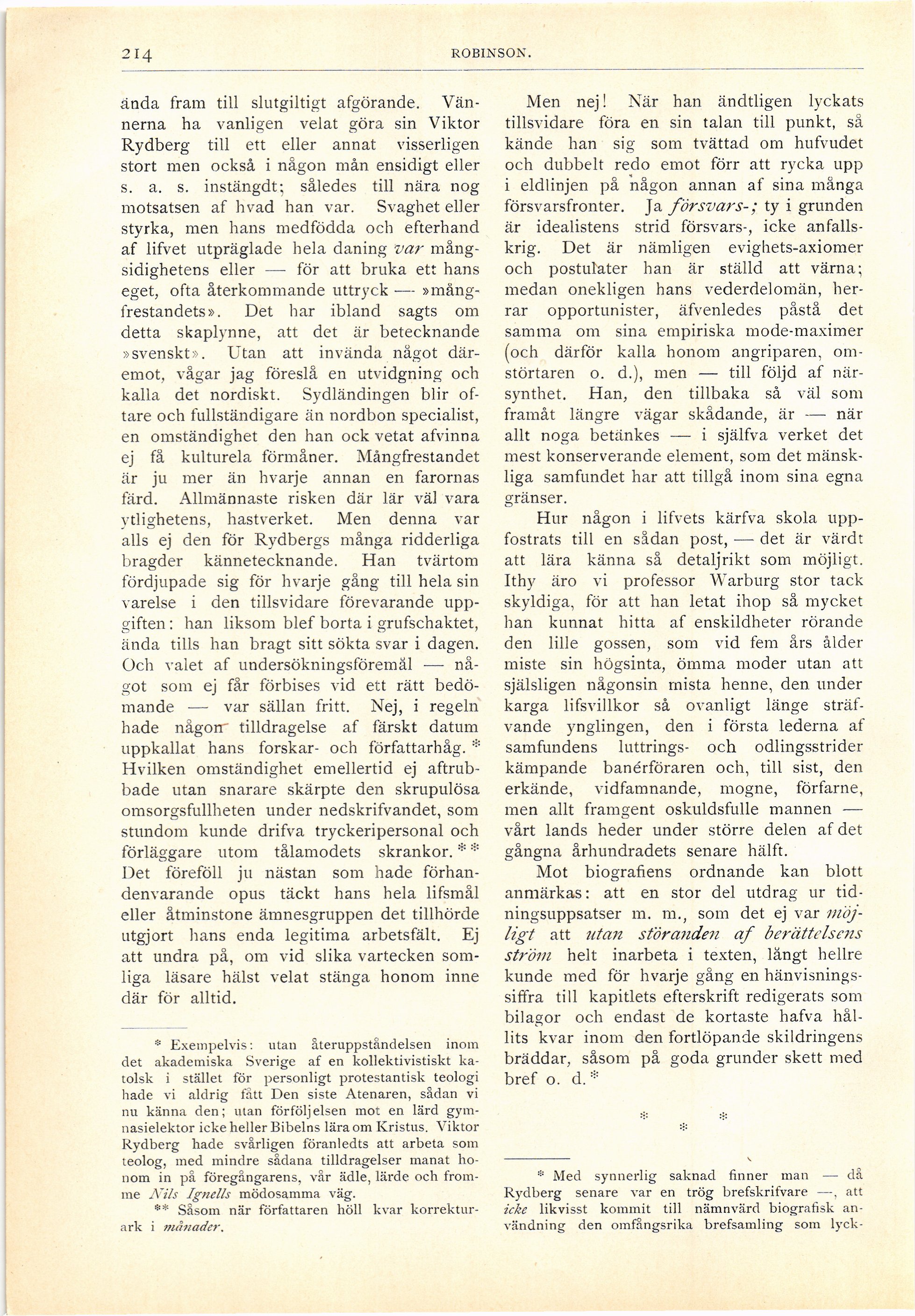 Rydberg senare var en trög brefskrifvare —. att