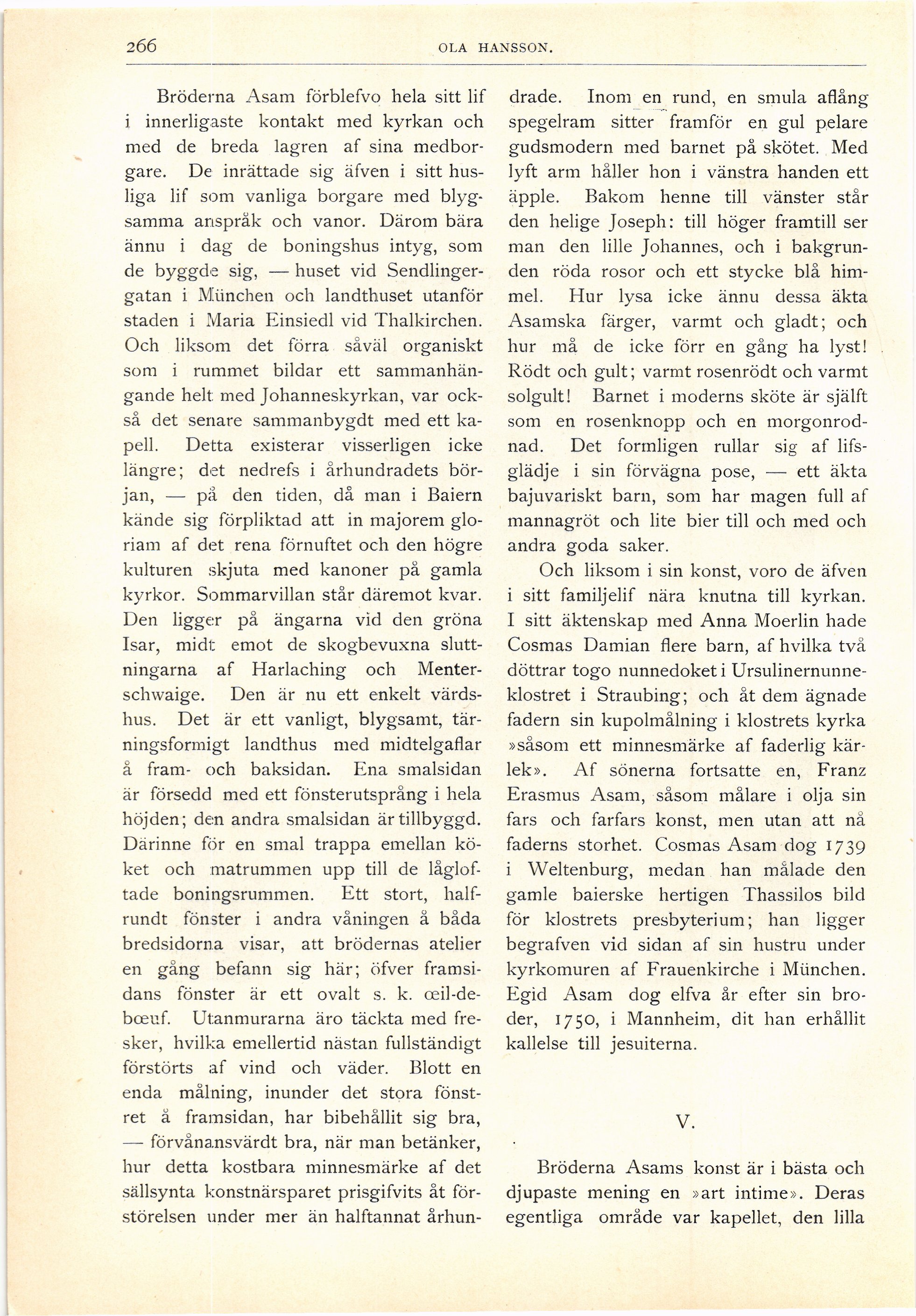 Full resolution (JPEG) - On this page / på denna sida - Femte häftet - Bröderna Asam. Af Ola Hansson. Med 8 bilder - IV - V