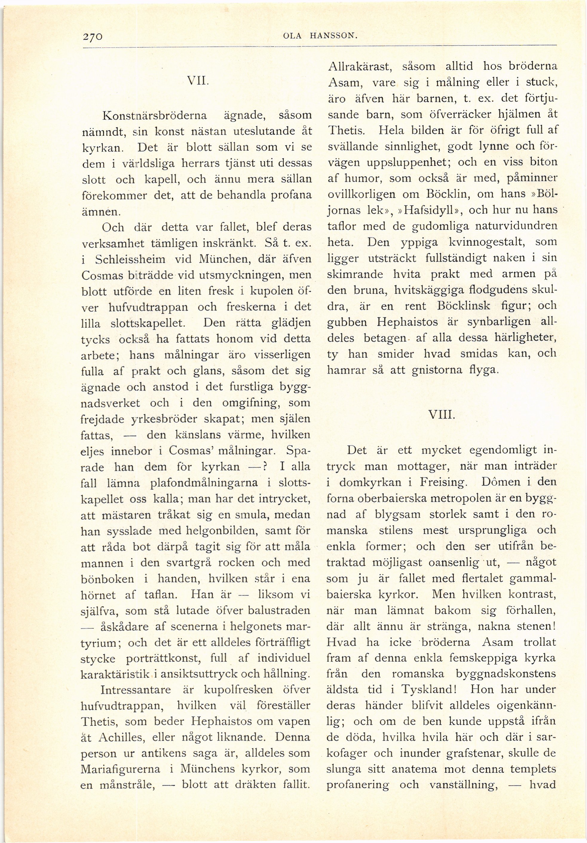 Full resolution (JPEG) - On this page / på denna sida - Femte häftet - Bröderna Asam. Af Ola Hansson. Med 8 bilder - VII - VIII