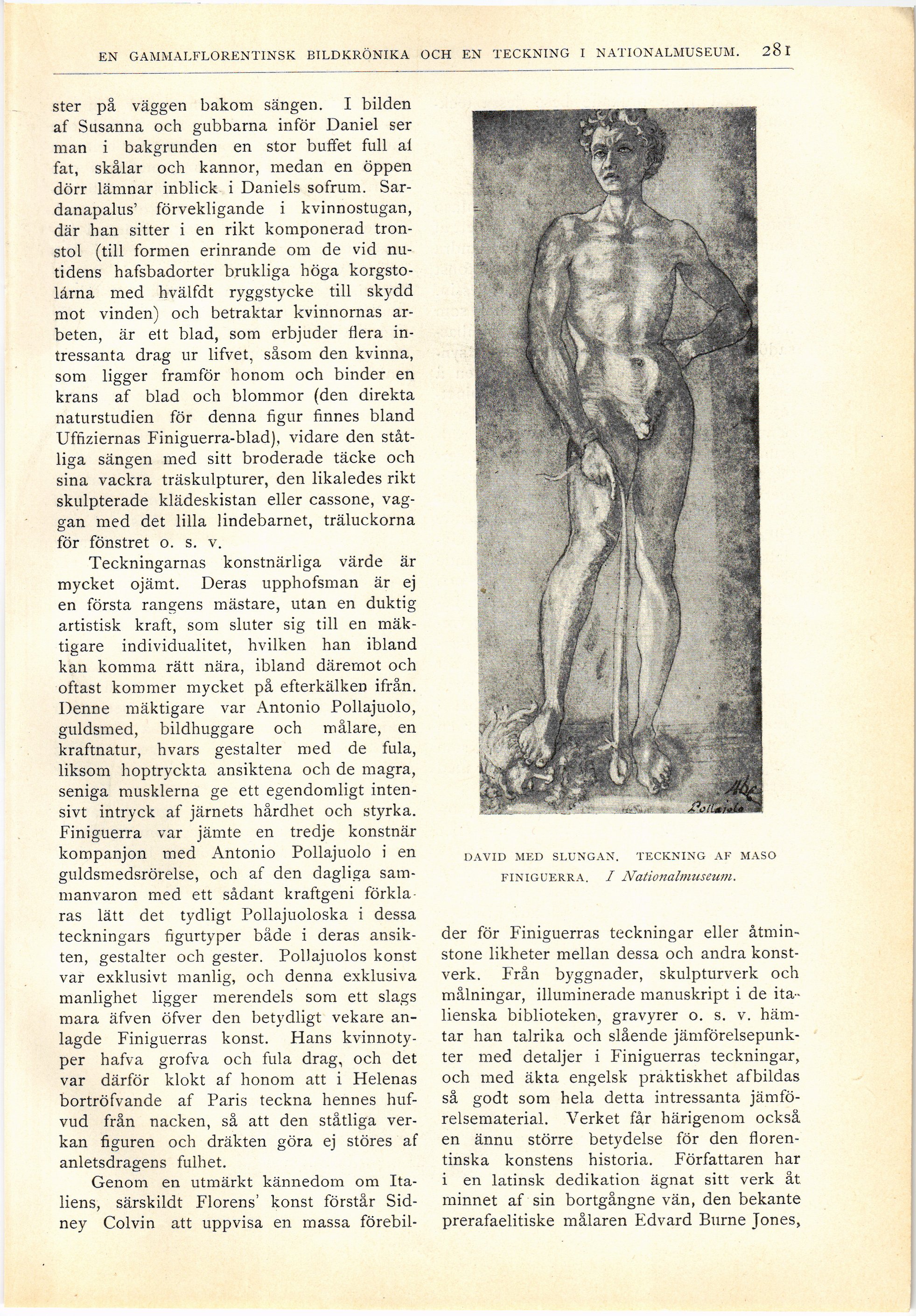 en gammalflorentinsk bildkrönika och en teckning i nationalmuseum. 281