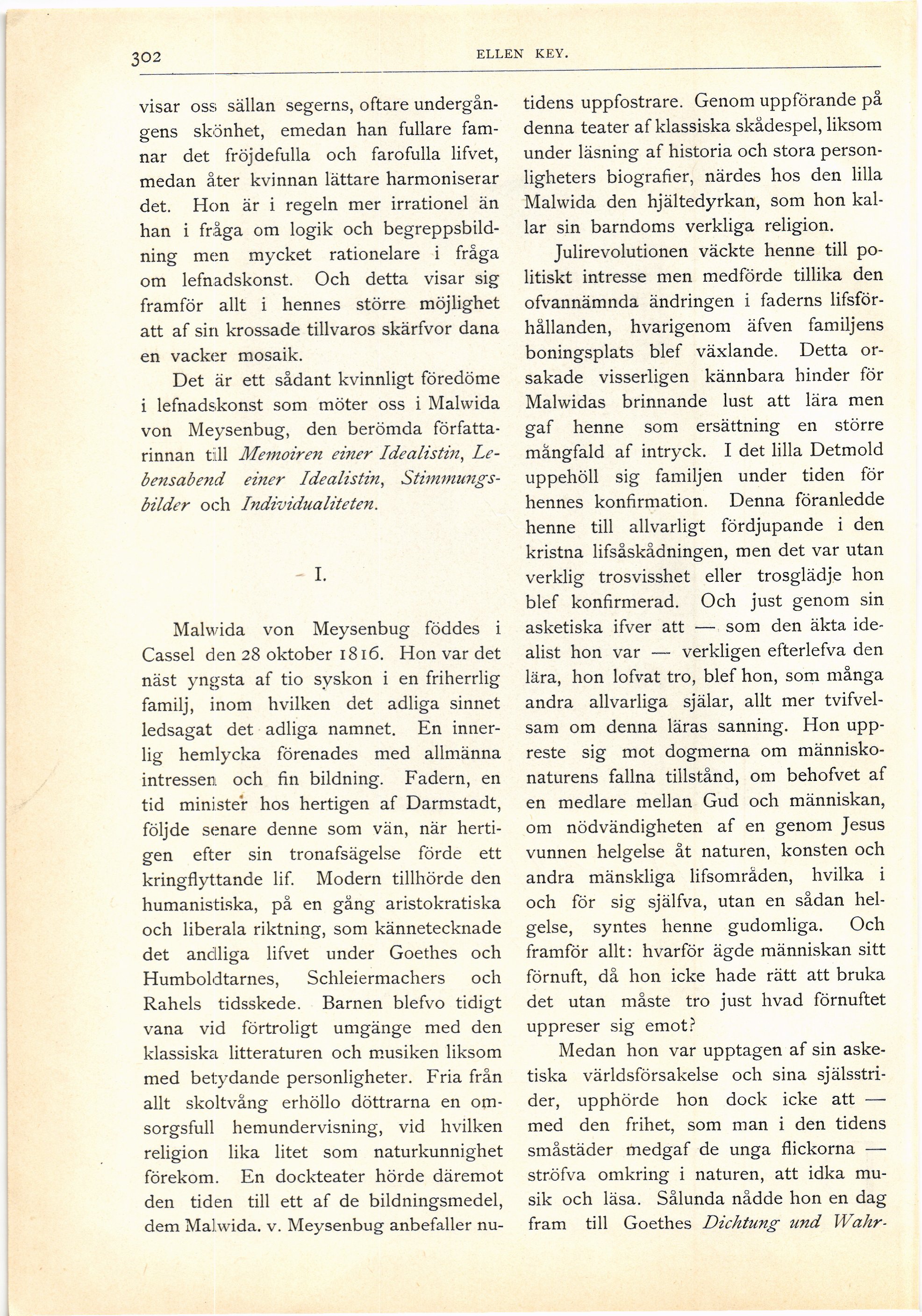 Full resolution (JPEG) - On this page / på denna sida - Sjätte häftet - Malwida von Meysenbug. En studie i lefnadskonst. Af Ellen Key. Med 2 bilder - I