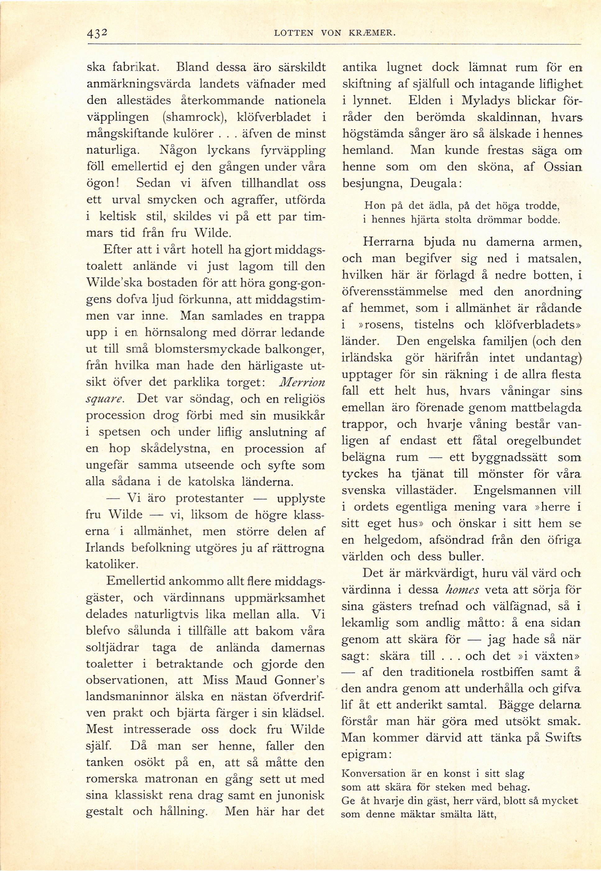 Full resolution (JPEG) - On this page / på denna sida - Åttonde häftet - Författaren Oscar Wilde’s föräldrahem i Irlands hufvudstad. Af Lotten von Kræmer