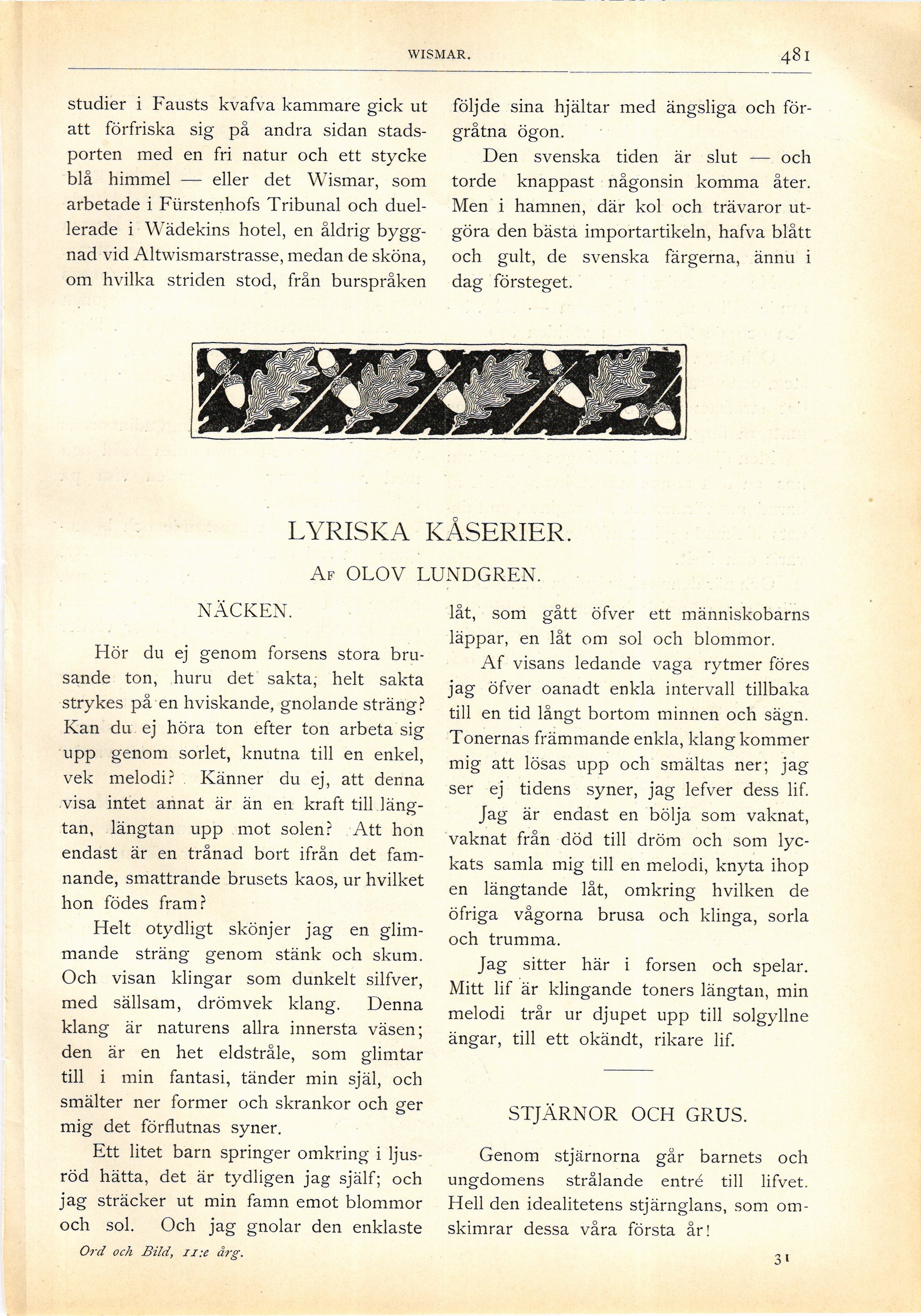 Full resolution (JPEG) - On this page / på denna sida - Nionde häftet - Wismar. Bilder från en svensk besittning. Af Nils Erdmann. Med 11 bilder - Lyriska kåserier. Af Olov Lundgren - Näcken - Stjärnor och grus