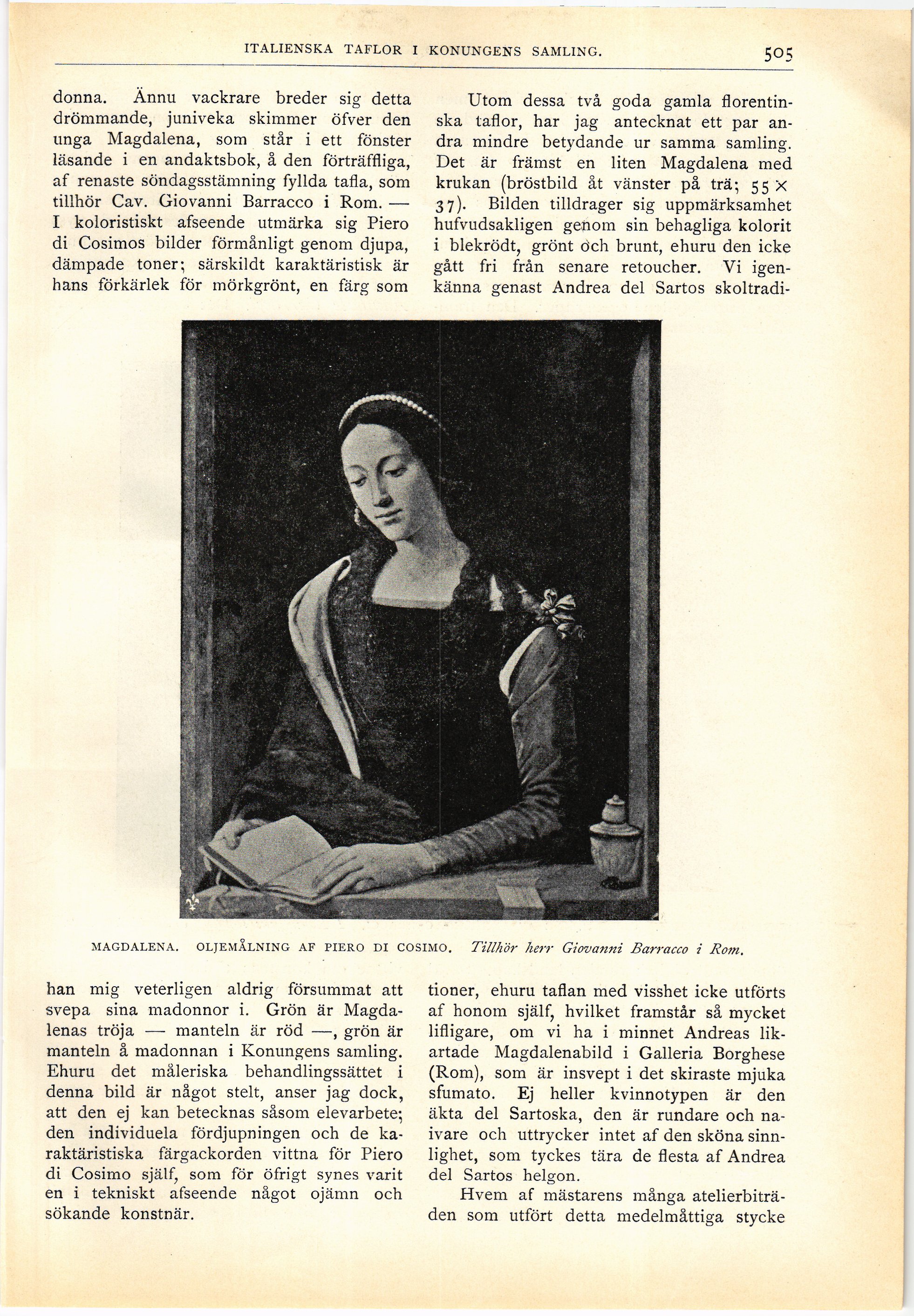 m agdalen a. oljemålning af piero di cosimo. Tillhör herr Giovanni Barracco i Rom.