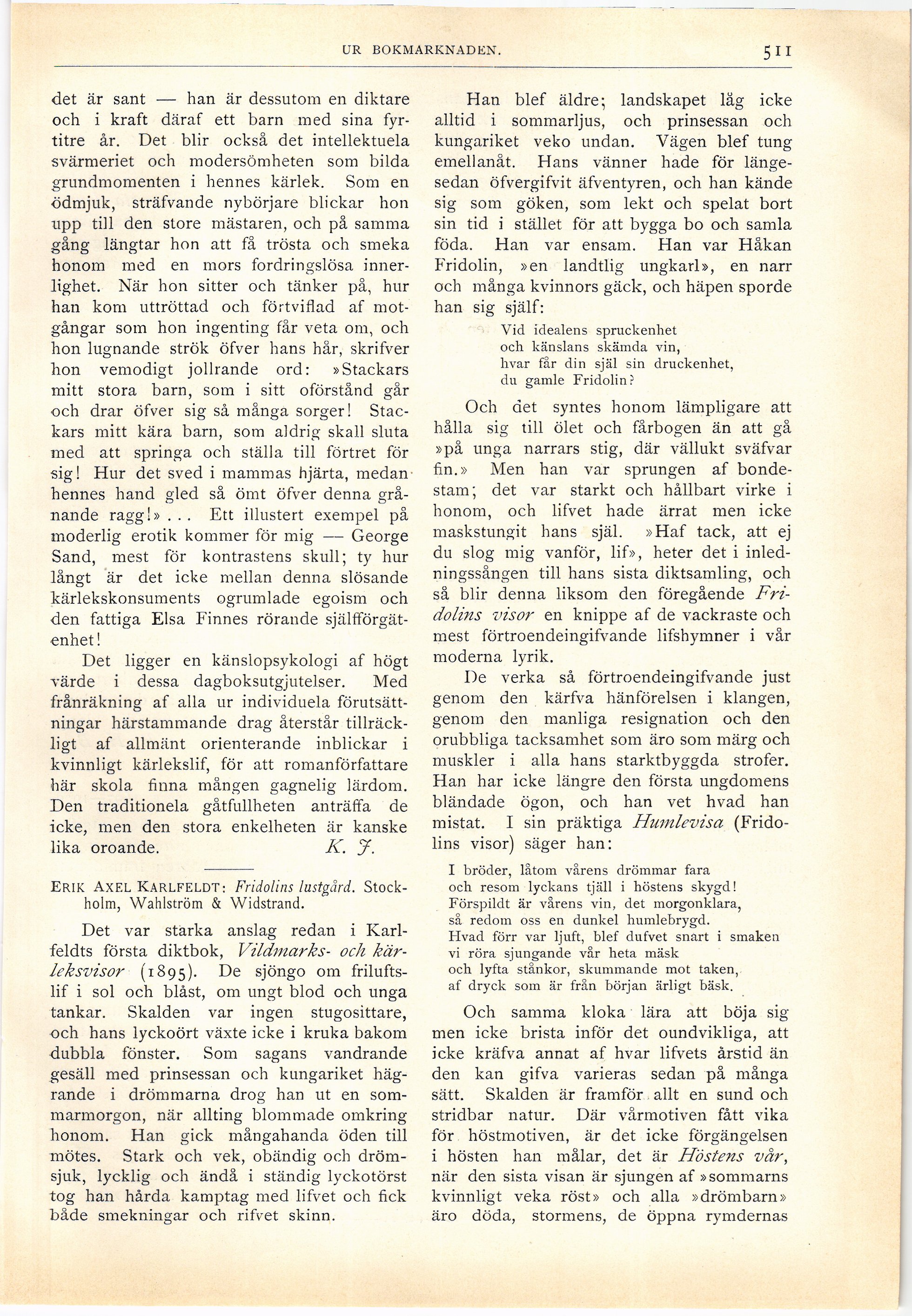 Erik Axel Karlfeldt: Fridolins lustgård.