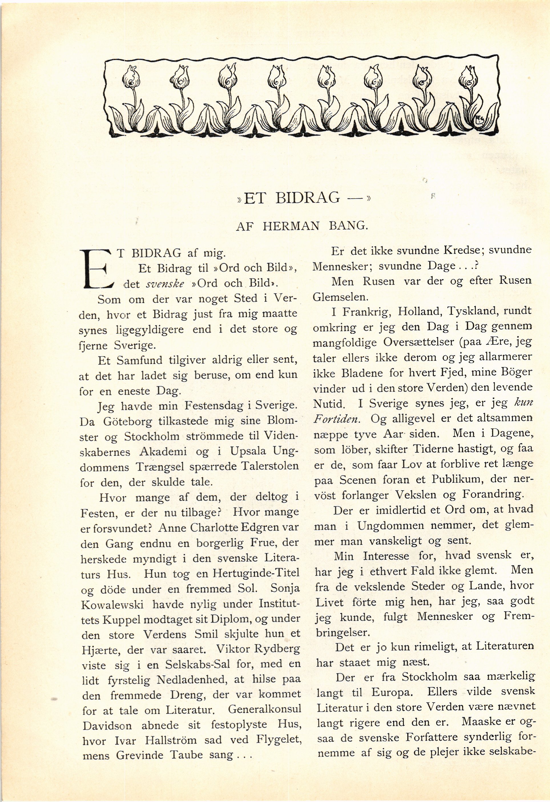 Full resolution (JPEG) - On this page / på denna sida - Tionde häftet - »Et Bidrag —». Af Herman Bang
