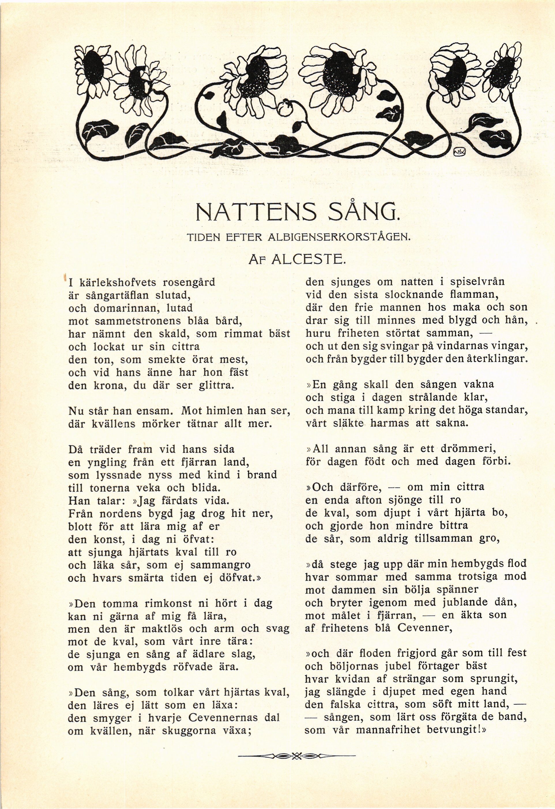 Full resolution (JPEG) - On this page / på denna sida - Tionde häftet - Nattens sång. Tiden efter albigenserkorstågen. Af Alceste