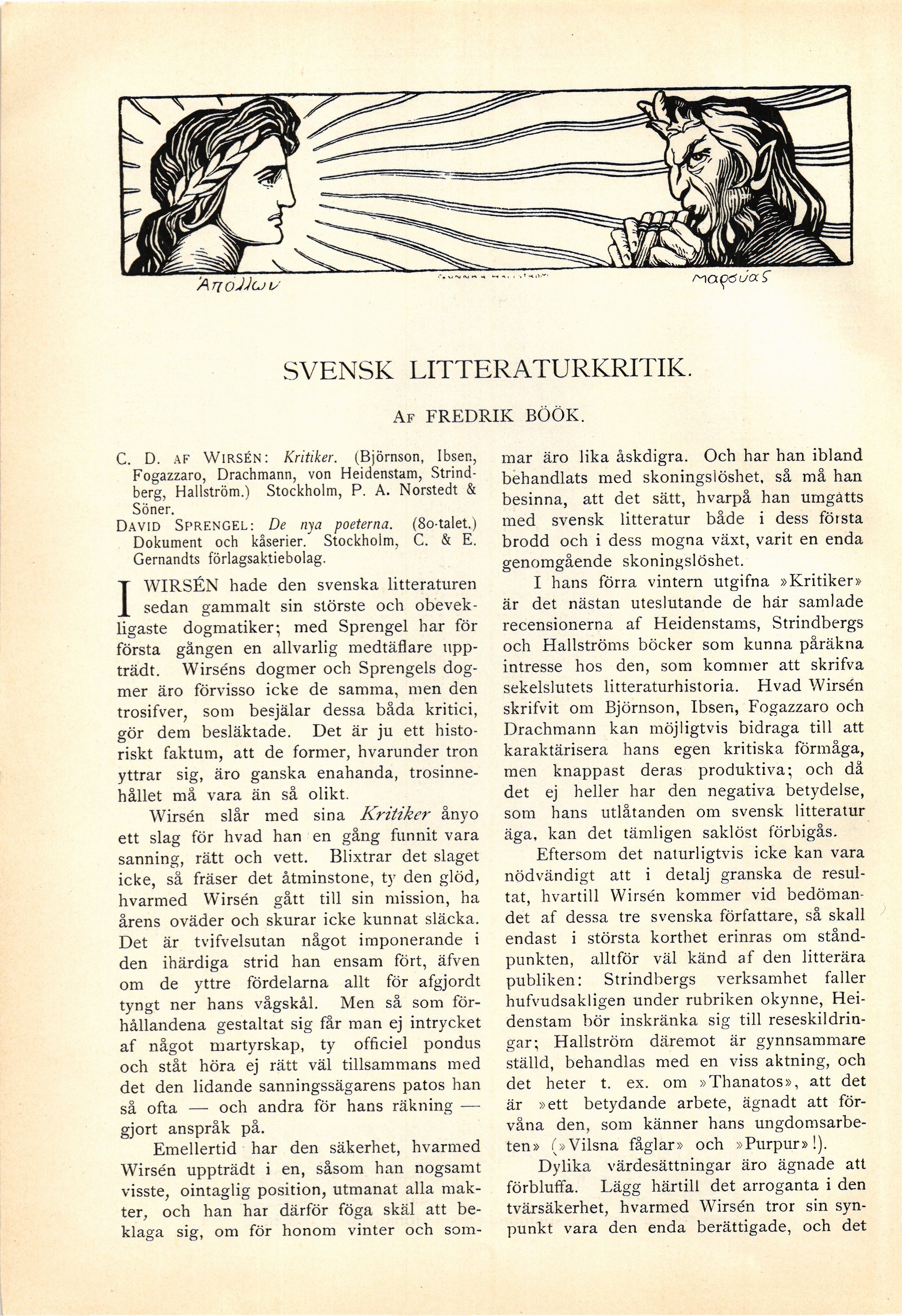 C. D. af Wirsén: Kritiker. (Björnson, Ibsen,