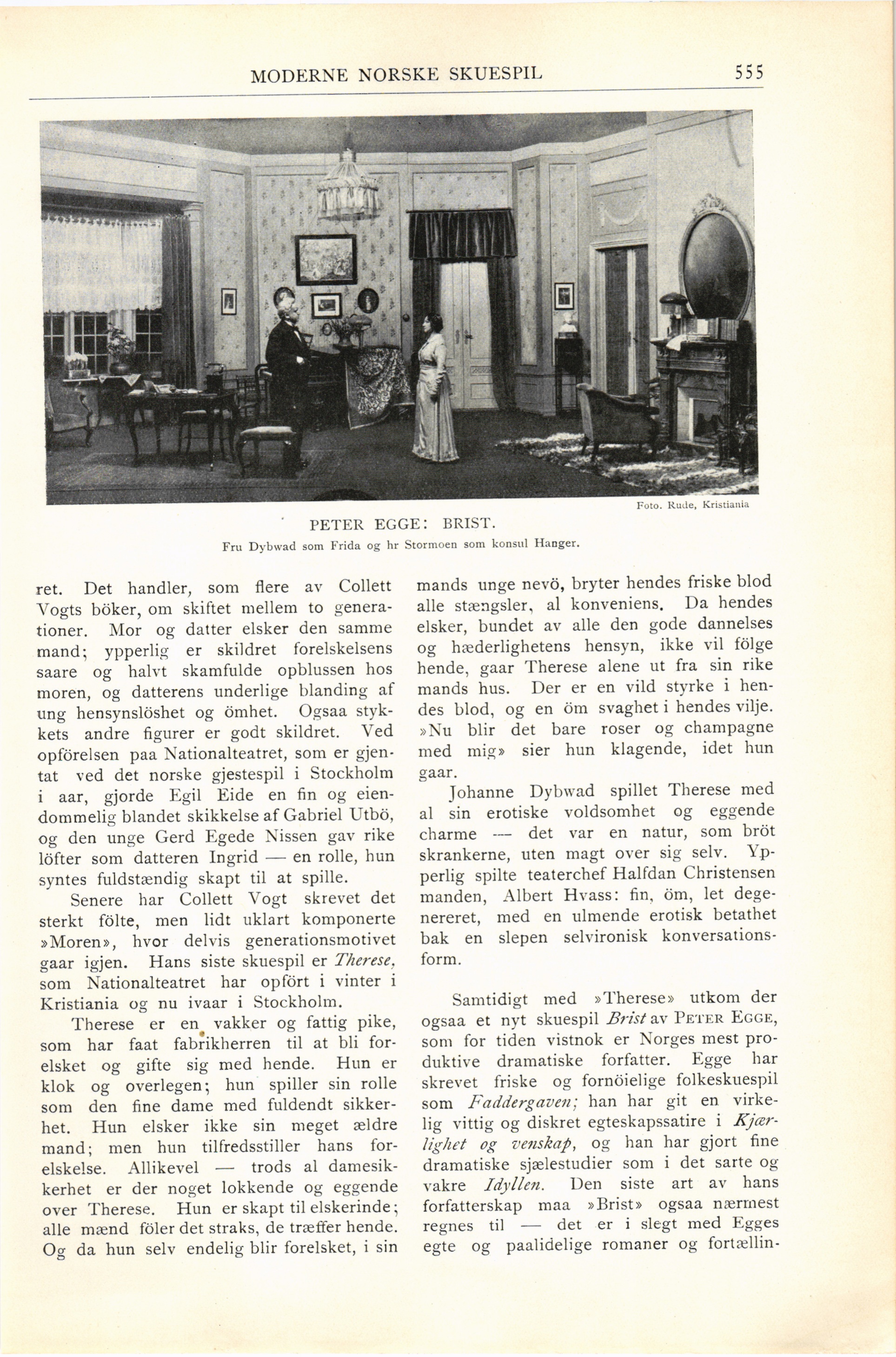ogsaa et nyt skuespil Brist av Peter Egge,