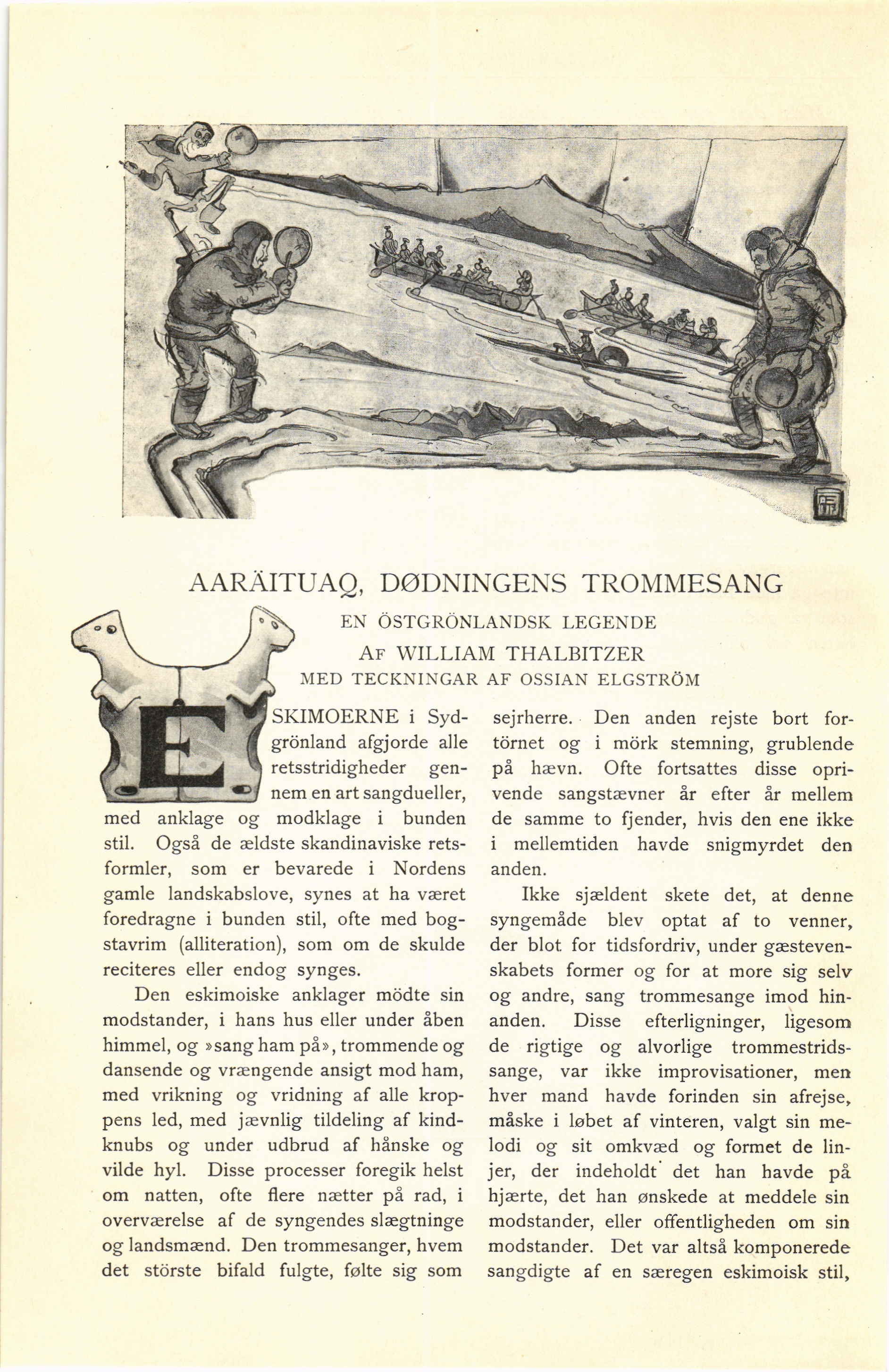 Full resolution (JPEG) - On this page / på denna sida - Elfte häftet - Aaräituaq, dødningens trommesang. En östgrönlandsk legende. Af William Thalbitzer med teckningar af Ossian Elgström