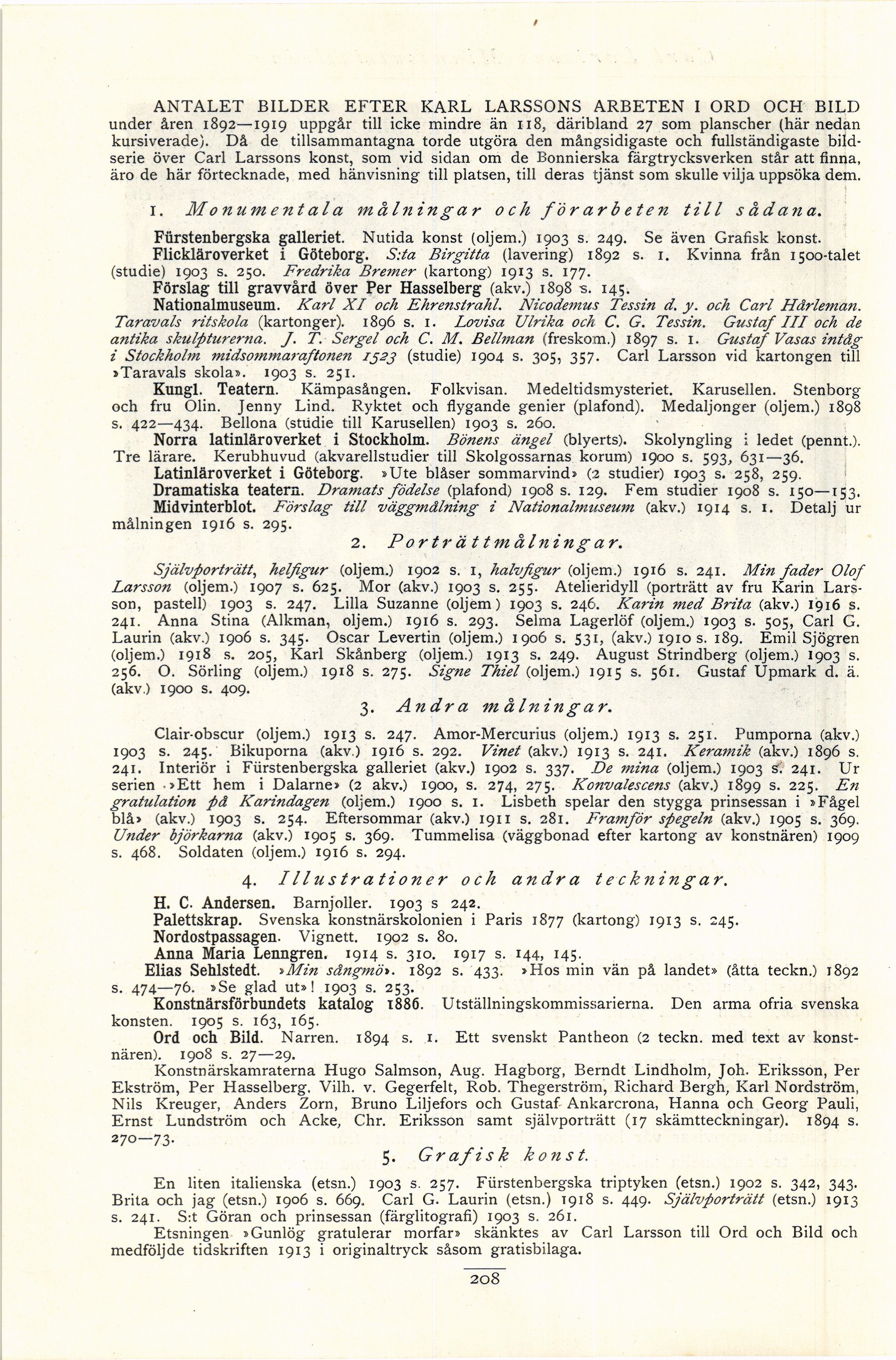 bildserie över Carl Larssons konst, som vid sidan om de Bonnierska fargtrycksverken står att finna,