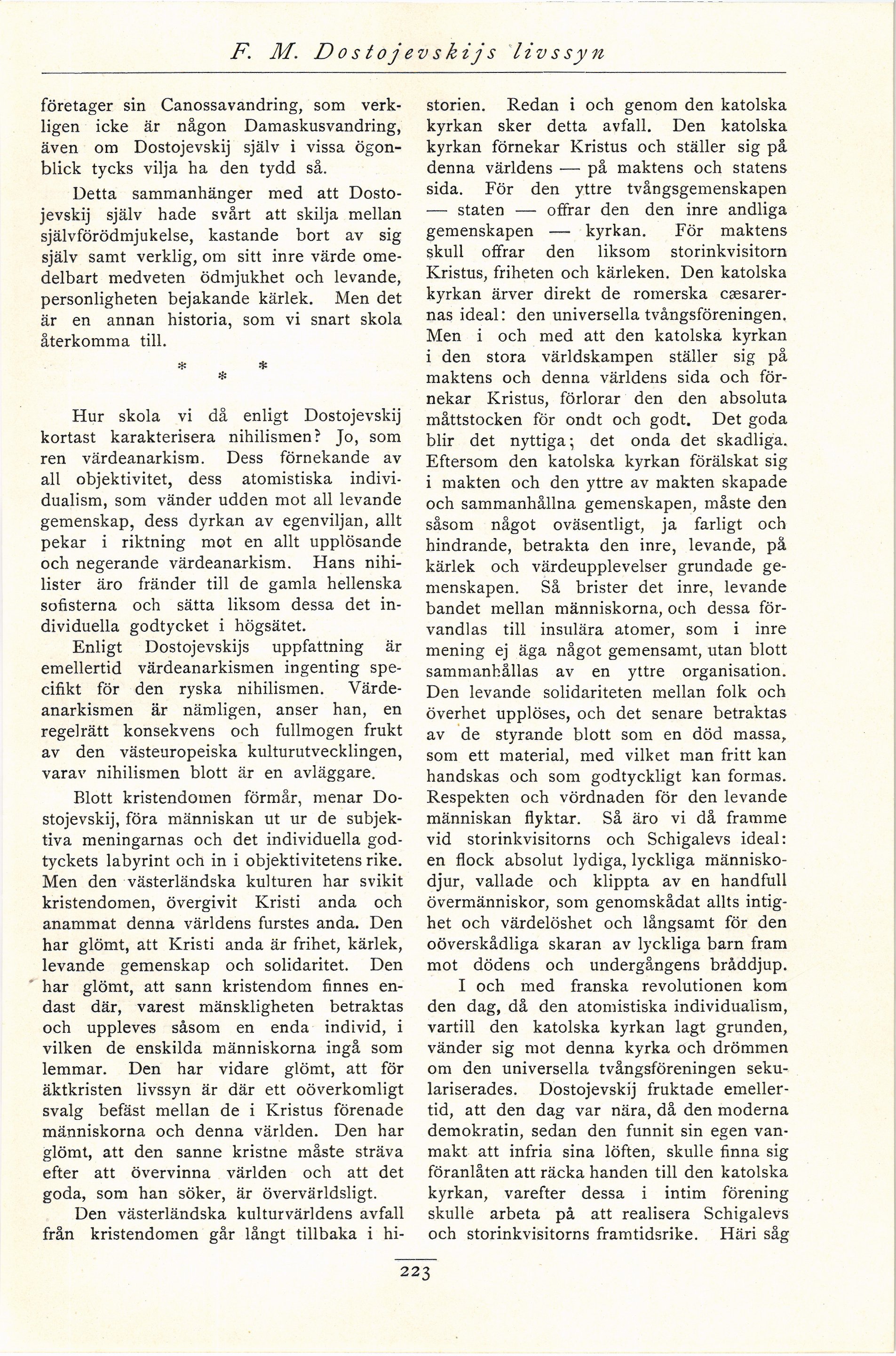 - F. M. Dostojevskijs livssyn. Av John Gustavson