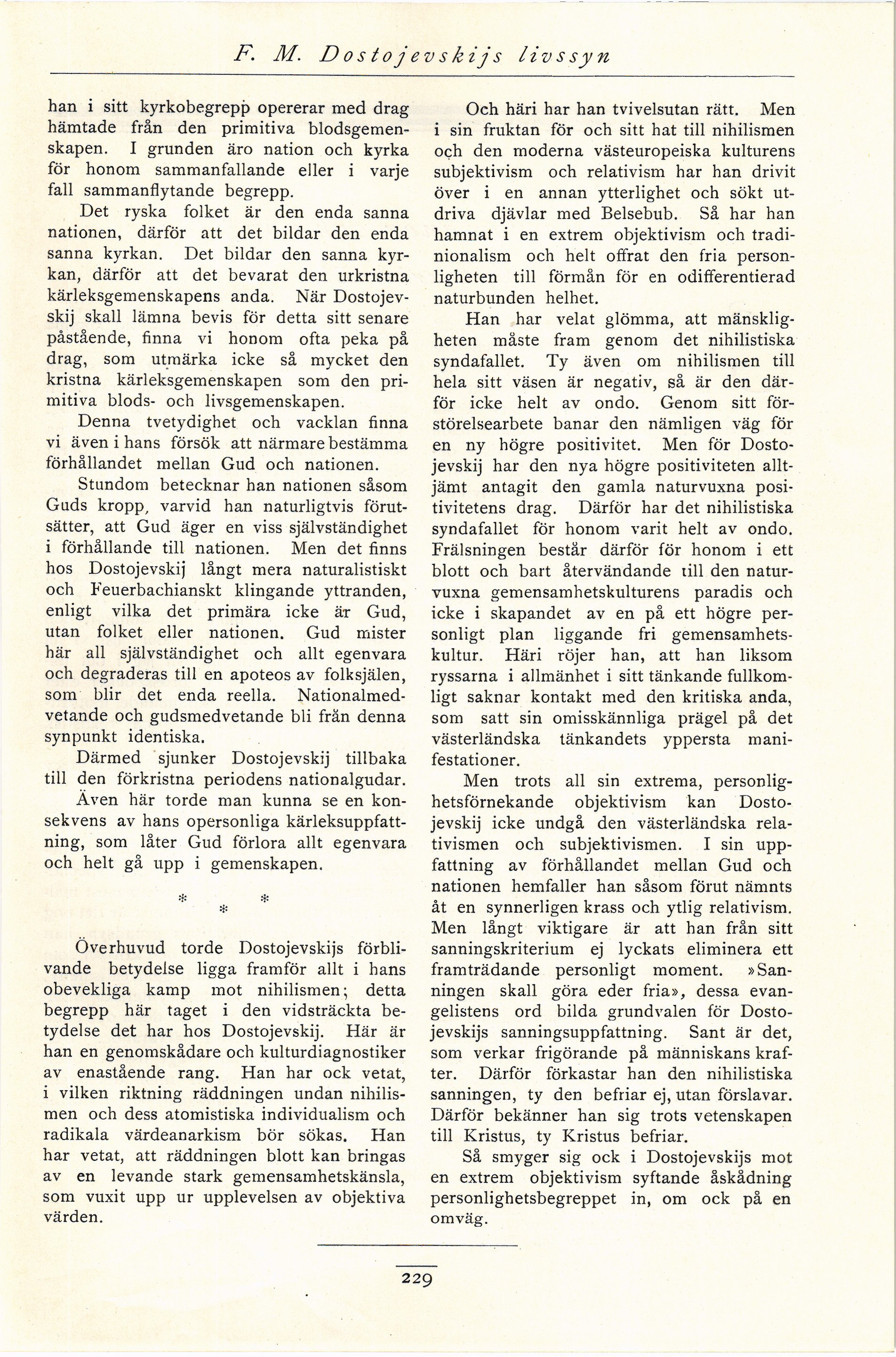 - F. M. Dostojevskijs livssyn. Av John Gustavson